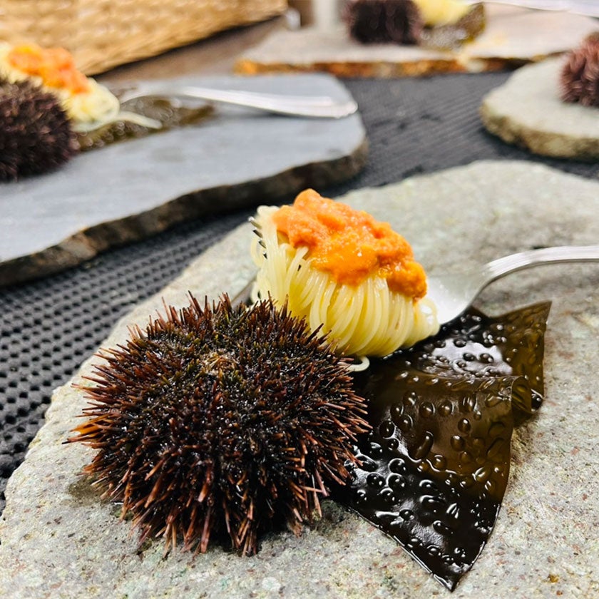 金山雲丹は、その品質の高さから、ミシュラン一つ星レストランのイベントでも使用されています。また佐渡島のRyokan浦島のフレンチレストラン『ラ・プラージュ』では出荷されたばかりの金山雲丹を使った料理を提供しています。プロフェッショナルたちに選ばれるその味わいは、天然を超えたと言われており、一口食べればわかる豊かな甘みと濃厚な旨みが特徴で、まさに「海の宝石」と言える逸品です。