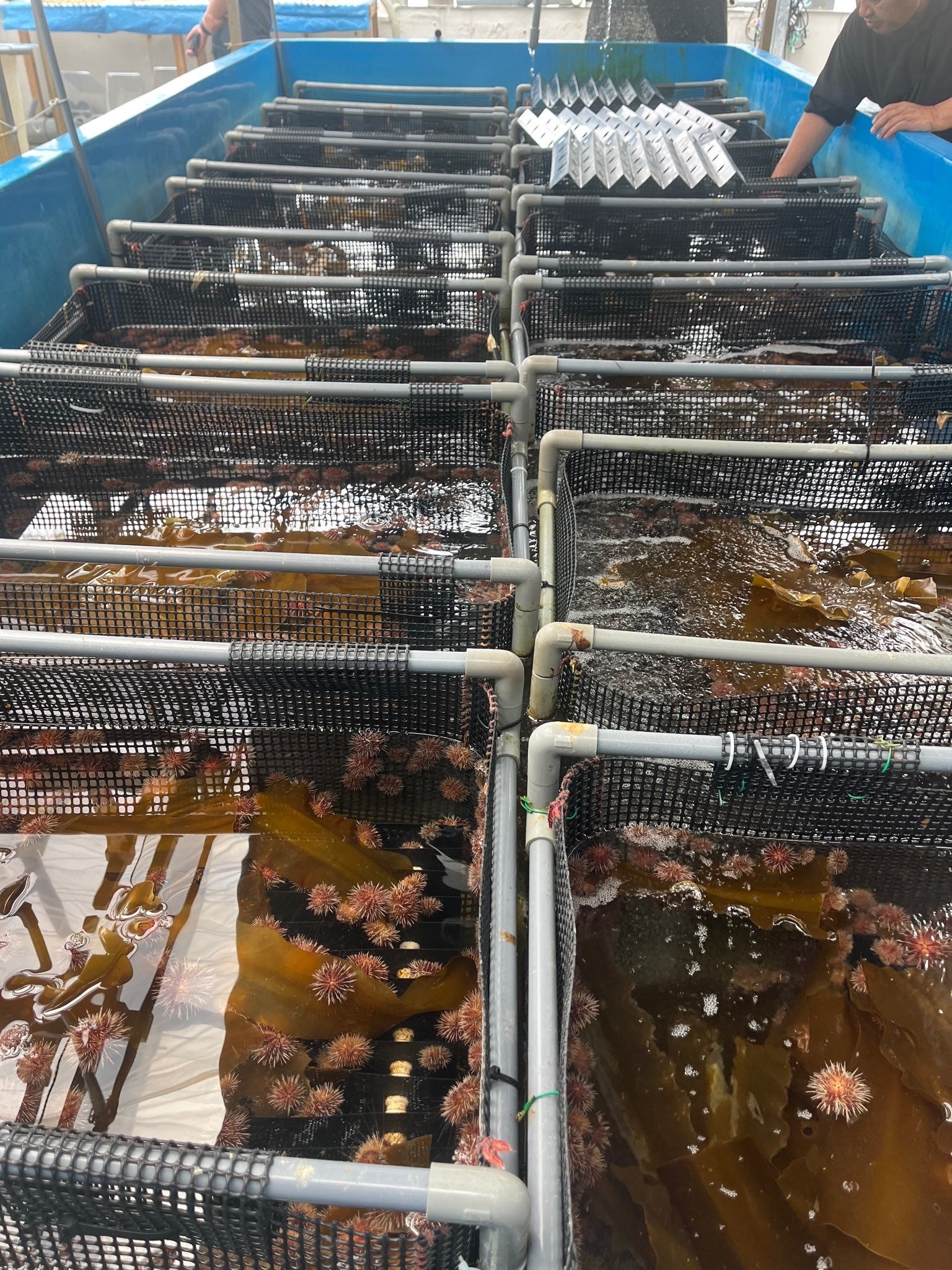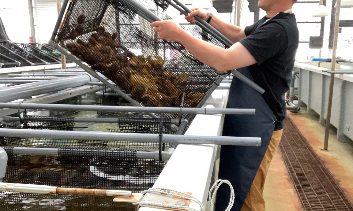 しかし、その道は平坦なものではありませんでした。エゾバフンウニの養殖は利尻昆布より遥かに難しかったからです。北海道や岩手からの種苗の長距離輸送が課題で大量死させてしまったこともありました。海上での養殖と違い、糞の除去など衛生面の問題も発生し、何度も失敗を繰り返してきました。そして失敗と成功を繰り返すこと5年、ついにエゾバフンウニの安定供給がおこなえるほどになりました。