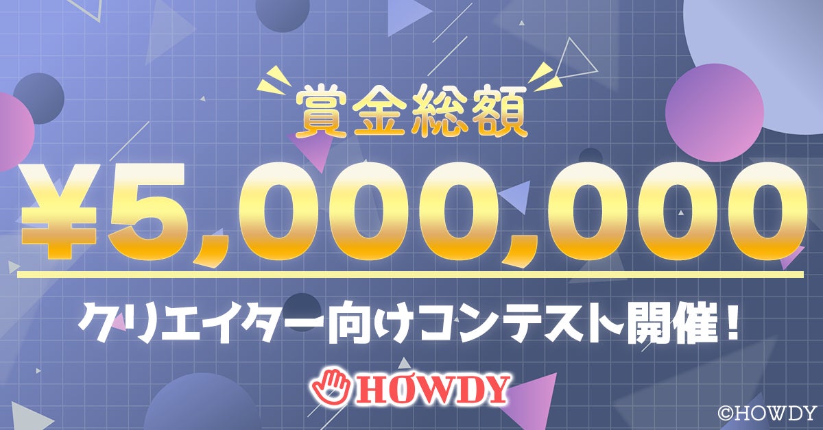 賞金総額500万円!!コンテストエントリー開始!!クリエイター向けプラットフォーム「HOWDY」リリース!!