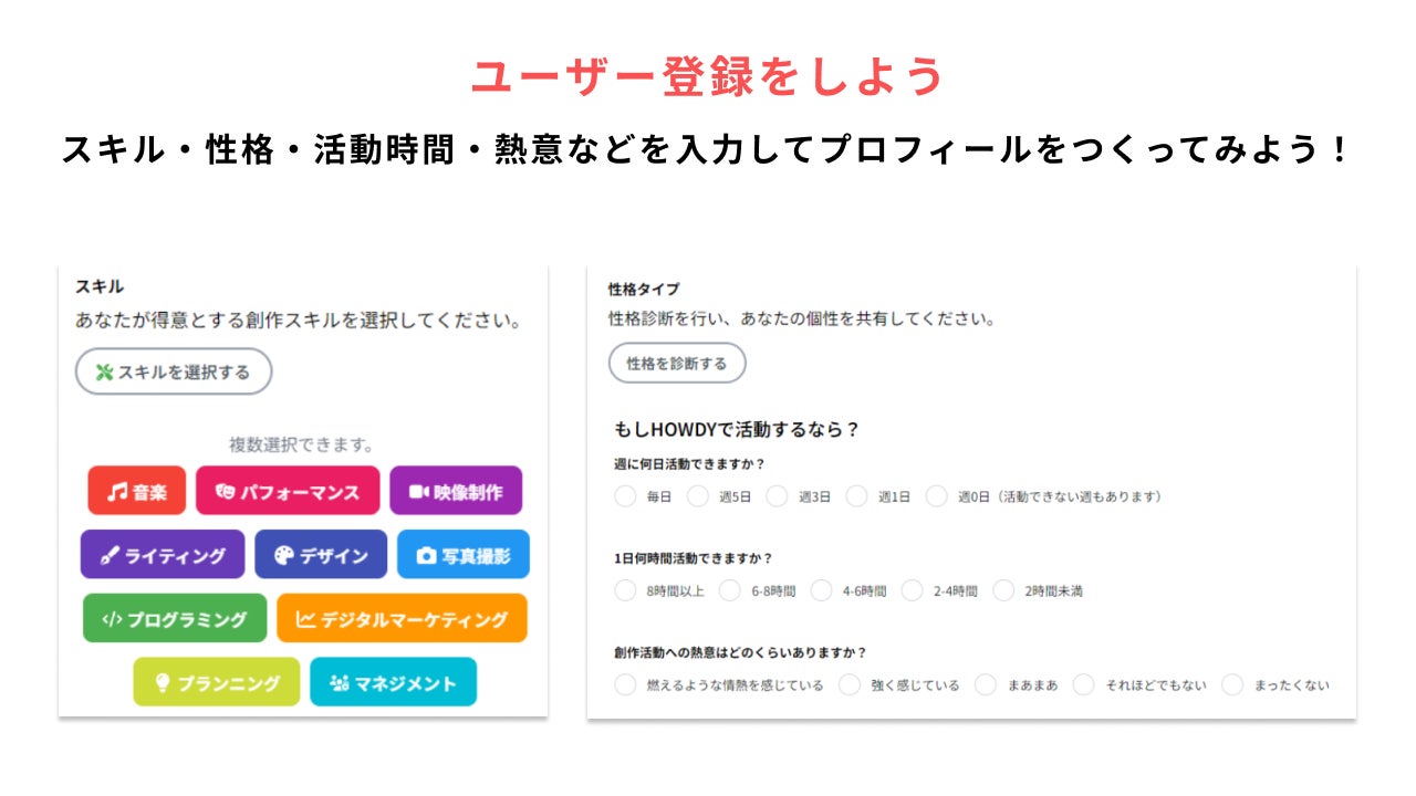 HOWDYには、たくさんの仕組みがあります。このリリース・説明資料で案内されているのは一部の仕組みのみです、ぜひユーザー登録をして使ってみてください。