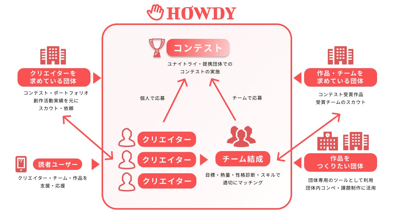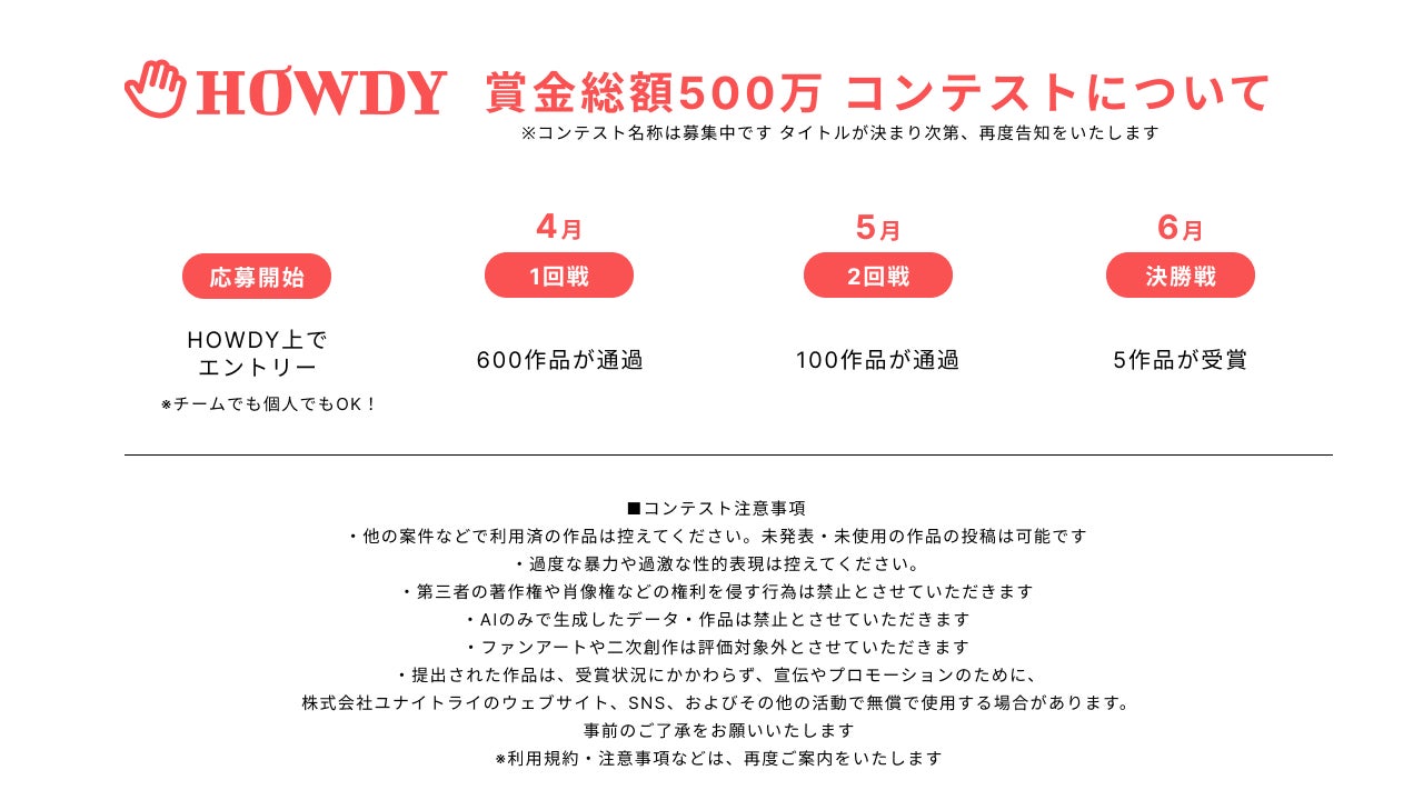 株式会社ユナイトライは、クリエイター向けプラットフォーム「HOWDY」をリリースしました。賞金総額500万円のクリエイター向けコンテストのエントリーも開始!