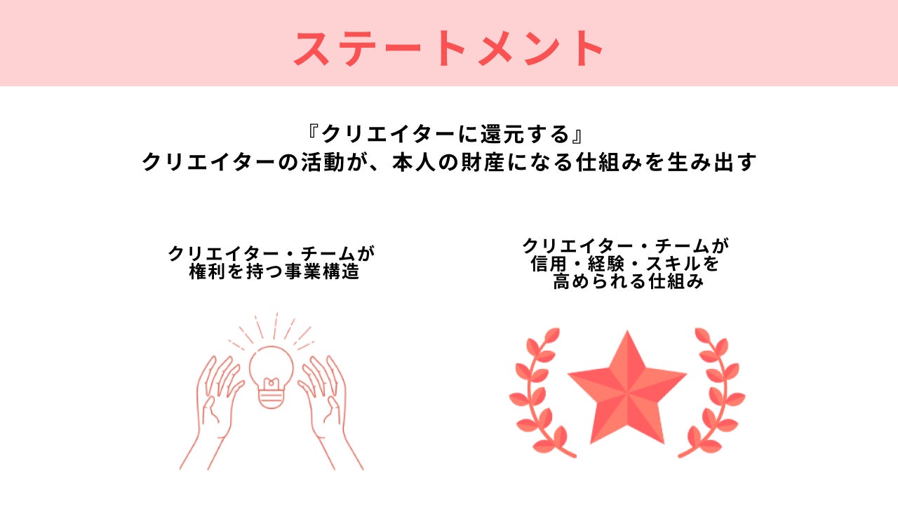 クリエイターやクリエイターにこれからなりたい方、クリエイターをサポートする団体のみなさまの賛同・協力を得ながら、新しい未来をつくりたいと考えています。