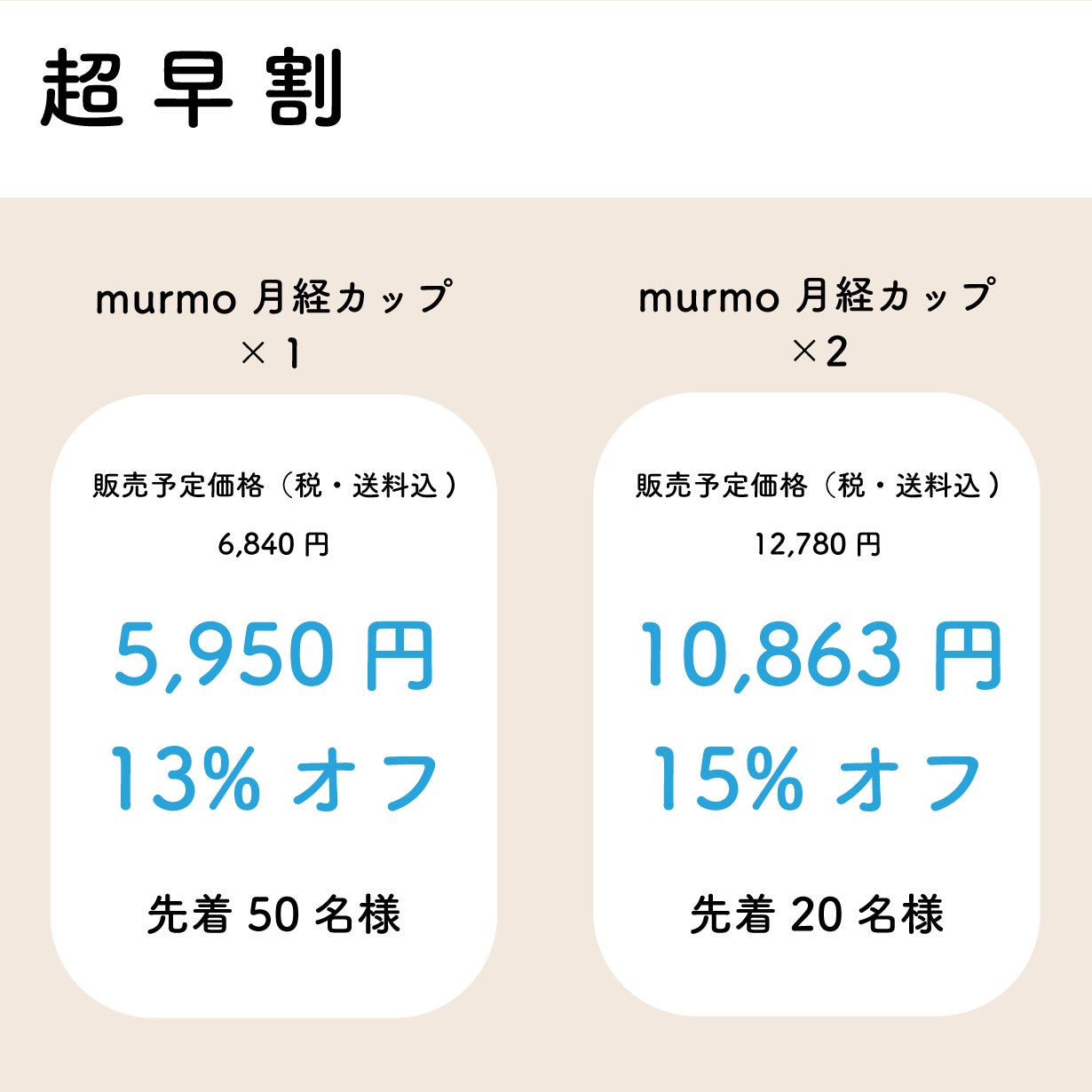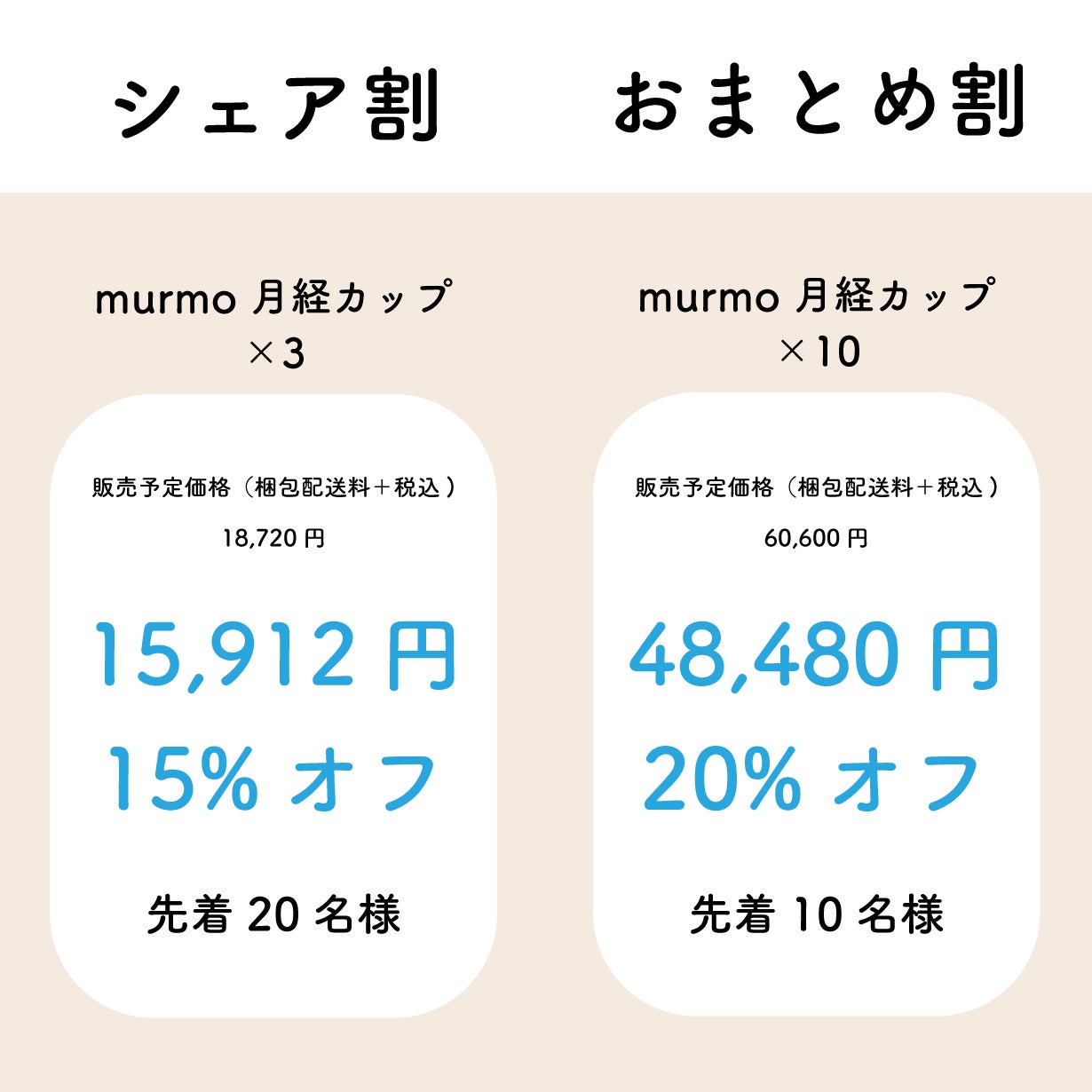 株式会社murmur は、当社が開発したオリジナル月経カップ「murmo/マーモ」の先行予約販売を、本日2月7日(水)より応援購入サイトMakuakeにて開始いたしました。