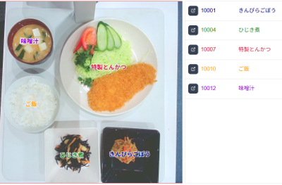 商品をAIカメラの下に置き、商品AI画像認識開始、読み取った商品が画像のように表示されます。