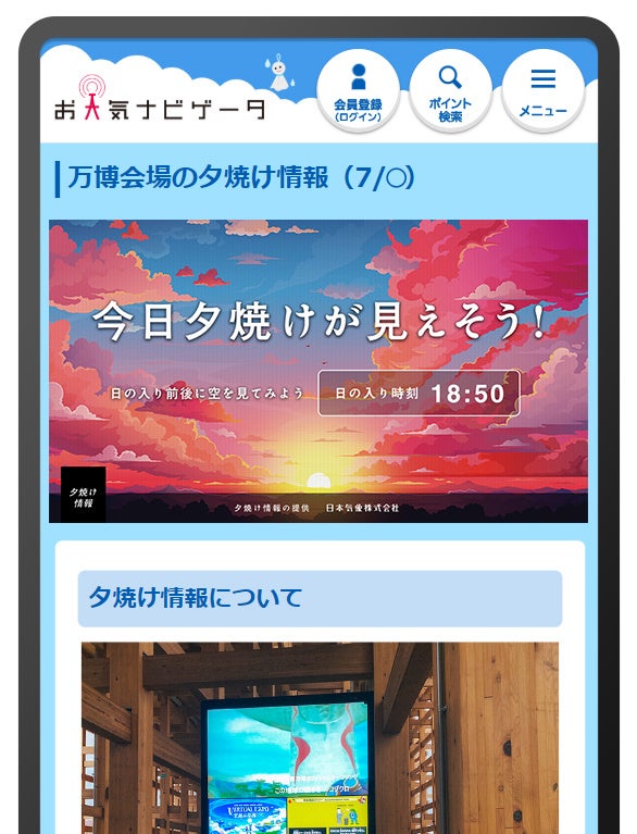 <「夕焼け情報」は、会場サイネージと日本気象ウェブサイトで確認可能>