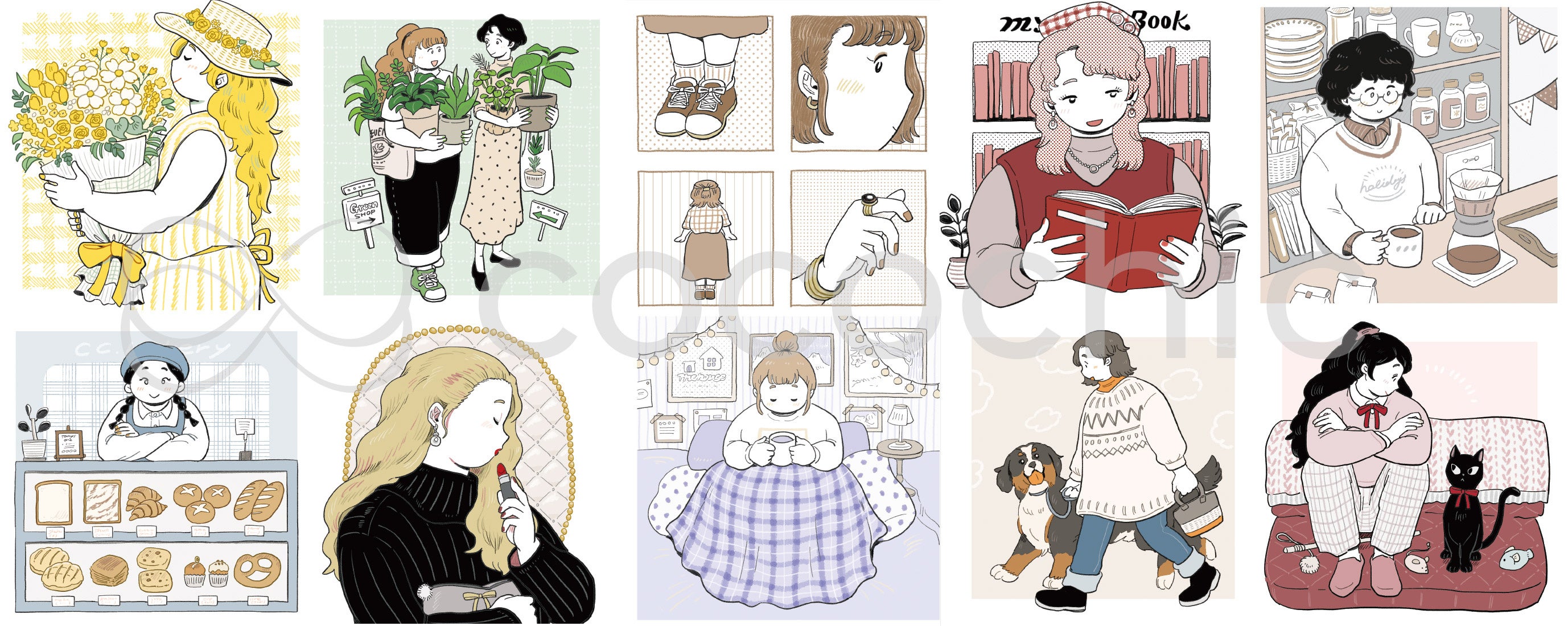 独自のcocochicサイズを体感していただけるTシャツと「ボディポジティブ」を発信している気鋭のイラストレーターharaさんデザインのオリジナルコースターをプレゼントします。