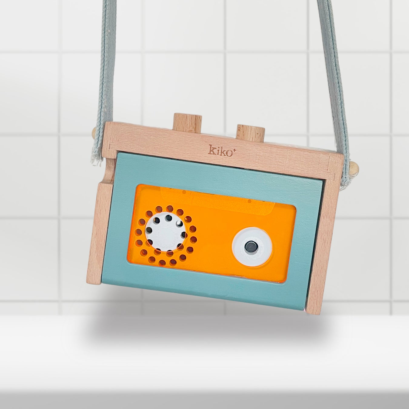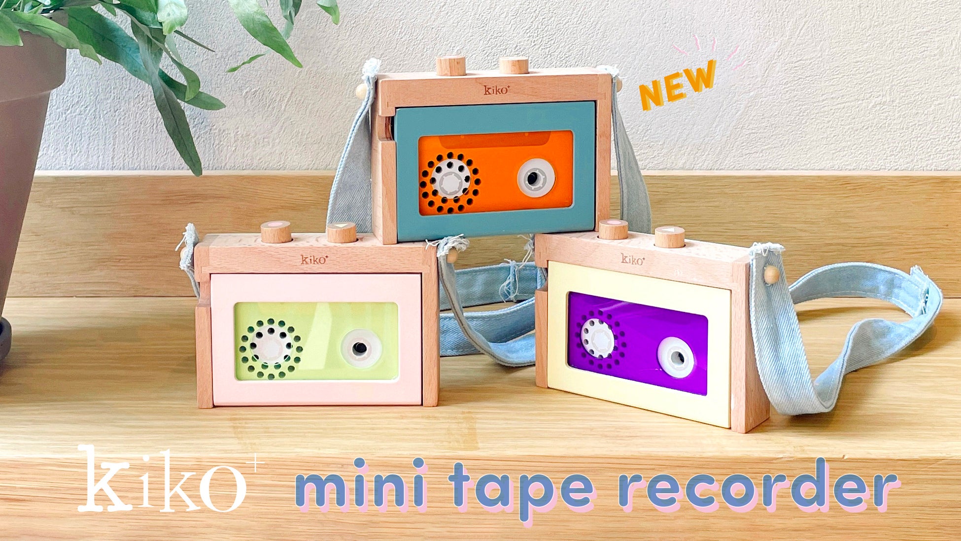 子どもたちは、自分の声を録音して遊ぶことがとっても大好きです。普段、スマートフォンのボイスレコーダーなどで遊んでいるお子さんの話もよく聞きます。そんな中、同ブランドのクリエイティブディレクターであるKaz Shiomi(同社代表 羽場和代)は、自身が小さい頃に持っていたラジカセやウォークマンをヒントに、この木製レコーダーのおもちゃの開発をスタートしました。昨年、一足先に発売を開始した、kiko+のラジカセ型おもちゃ『tape recorder』は大好評。それに続き、今年はとっても可愛い、ポータブルタイプのミニレコーダーが新登場しました!