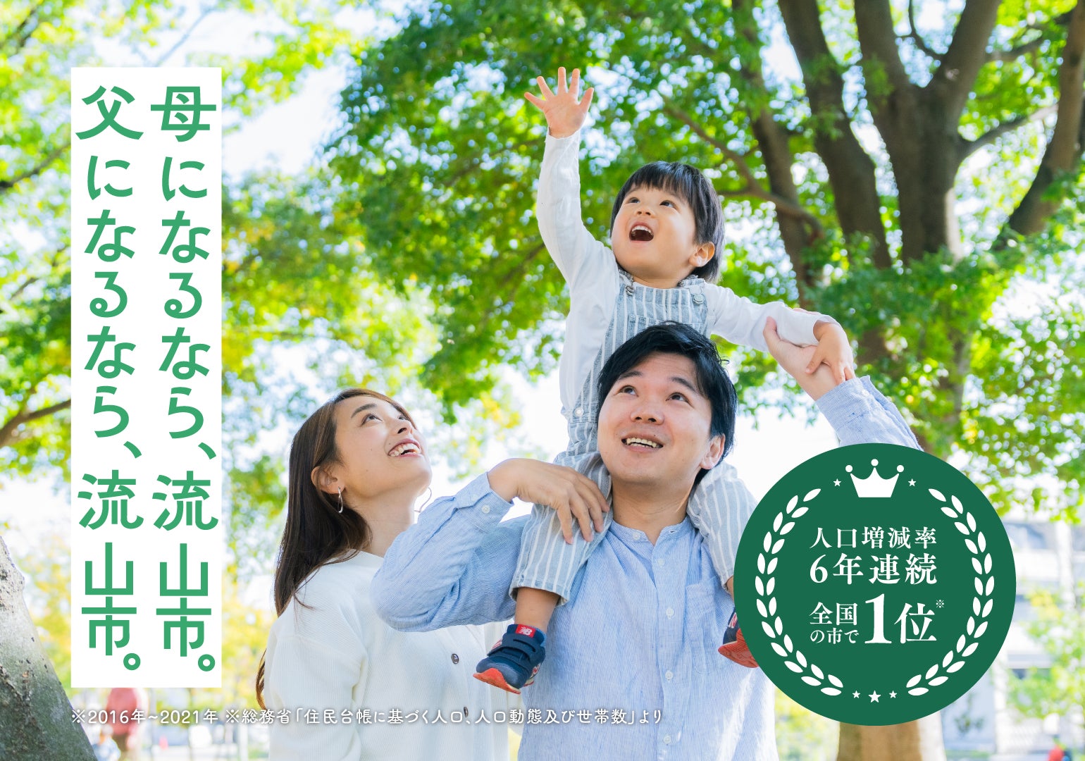 流山市は、「母になるなら、流山市。」「父になるなら、流山市。」のキャッチコピーを軸に⾸都圏域に住む共働き子育て世帯に向けたPRを11年展開し、全国の市のなかで人口増加率6年連続1位*となるなど、今注目を浴びているまちです。