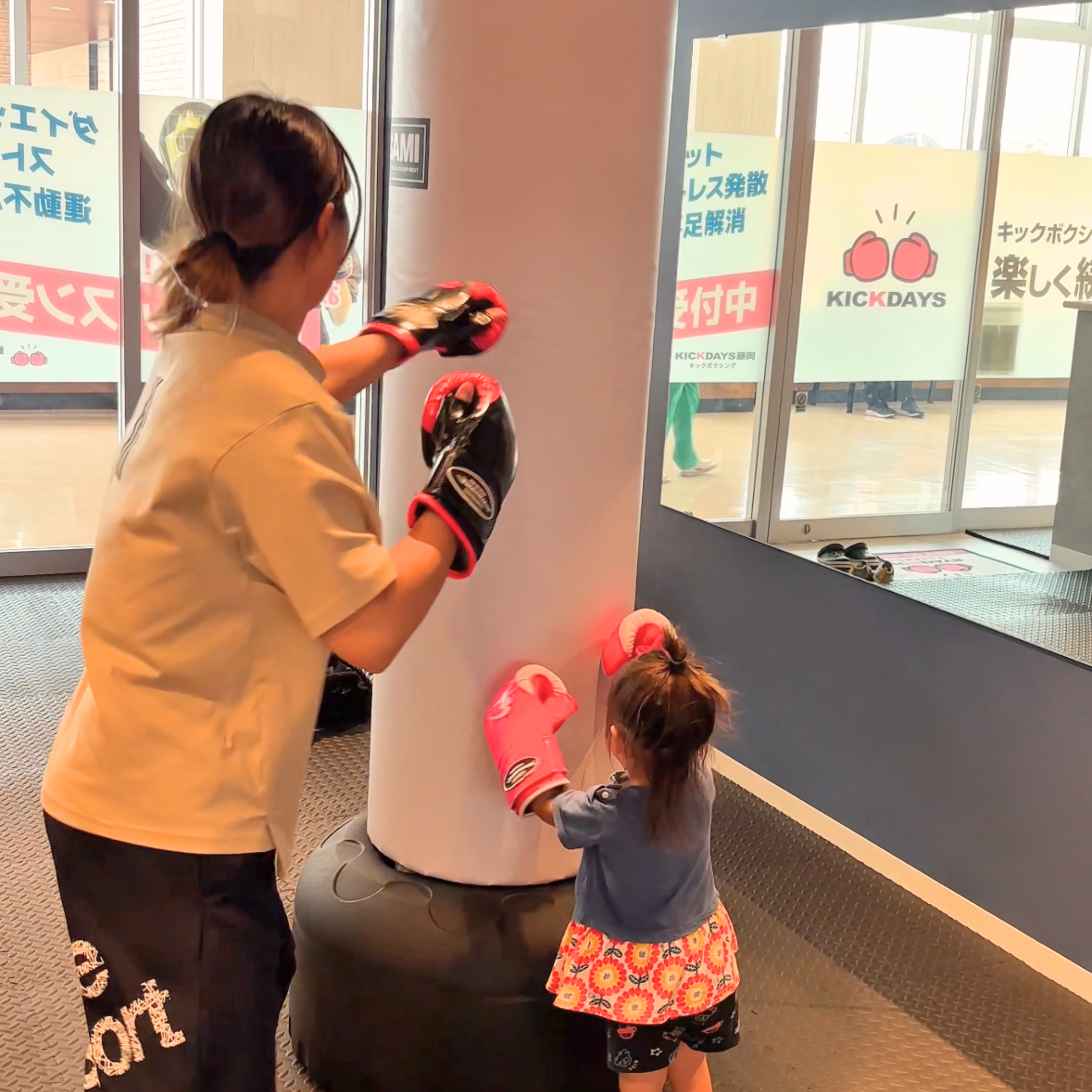 「産後ダイエットをしたいけど子供を預けられない」「1人では運動が続かない」「時間がなくて運動が出来ない」そんなママを一人でも減らしたい—。その想いから、KICKDAYSは全店でお子さま連れでの来店を歓迎しています。