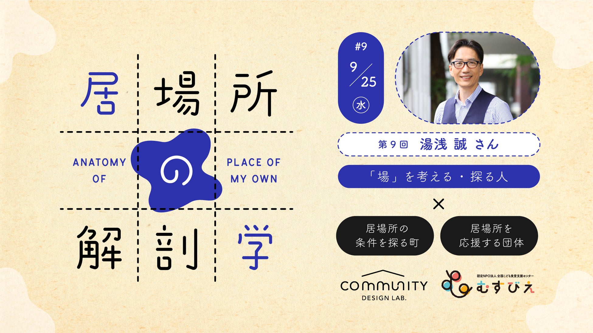 その「居場所の解体新書」制作に進むためのカギとなるのが、9月25日に開催される第9回です。ゲストの湯浅氏とともに、誰もがごきげんでいられるような地域を目指し、地域の生態系と「居場所」の未来についてディスカッションします。