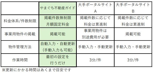 ・事業用は別途料金が必要であることが多い→同一料金で全物件を掲載可能