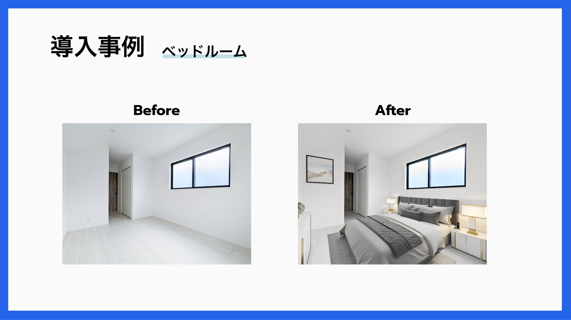 つまり、以前よりも10倍多くの物件にバーチャルホームステージングを実施できるため、売却困難な物件や入居しにくい賃貸物件だけでなく、より多くの物件へ幅広く、低コストでホームステージングを行うことができます。
