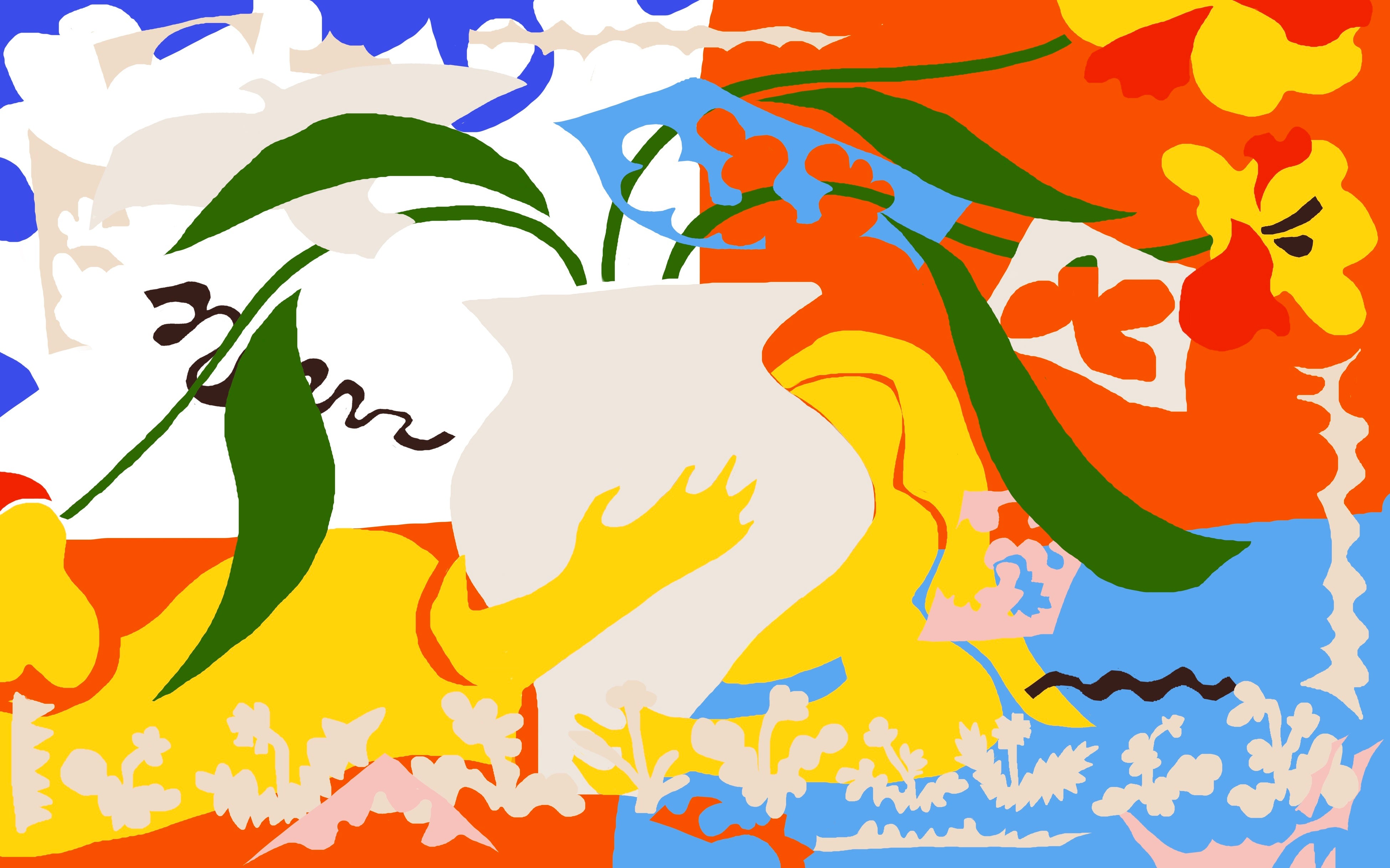 キャラメル専門店NUMBER SUGARには、オープン当初から同店のパッケージデザインを手掛ける山本万菜の鮮やかな絵画を展示します。