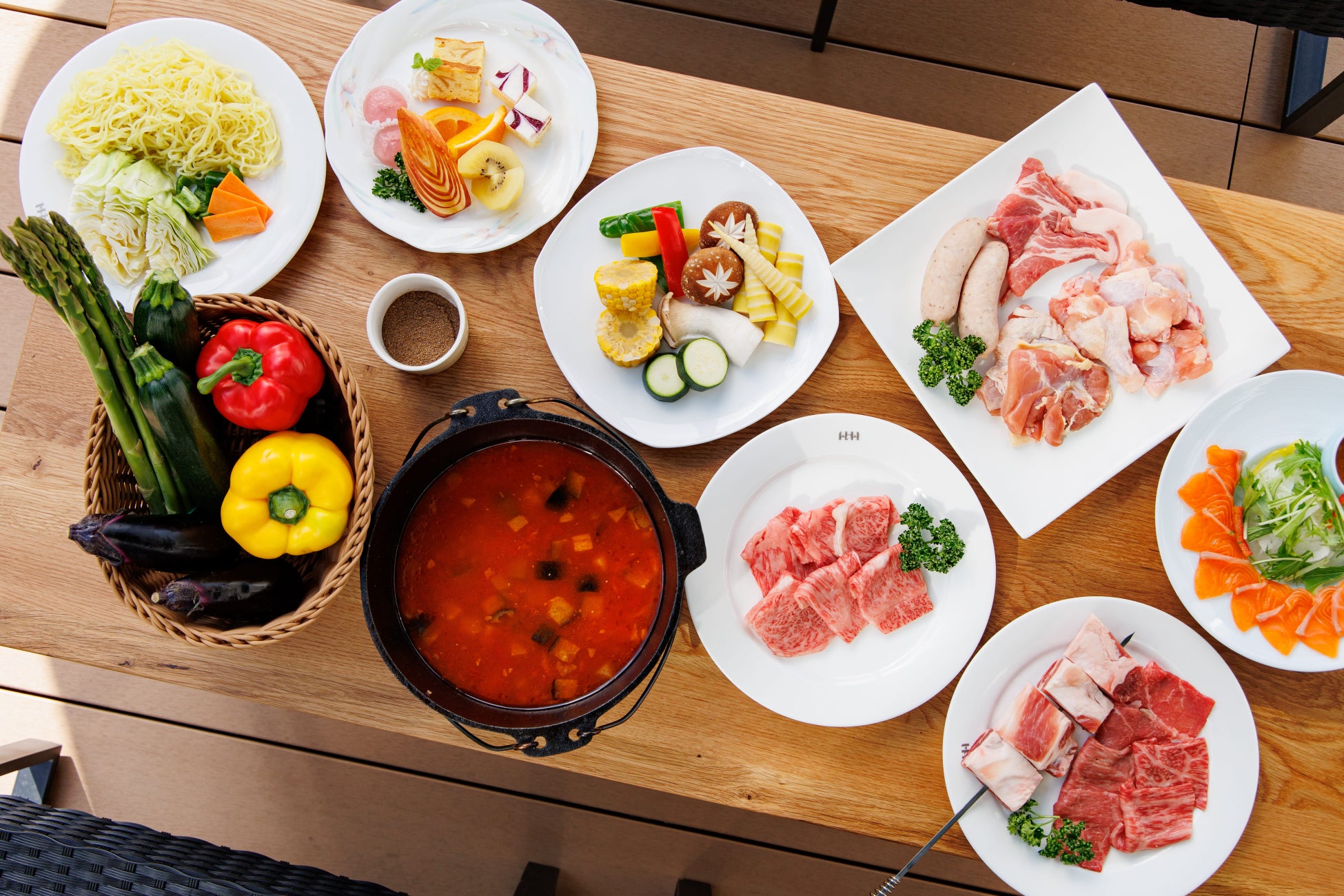 信州の食材を贅沢に使ったお手軽BBQ。開始時間までにスタッフが準備いたしますので、あとは楽しむだけ!気軽に手軽にBBQをおたのしみいただけます。冬季は、信州牛・白馬豚を使用した「すき焼き鍋」をご用意いたします。お部屋のこたつで温まりながらお召し上がりください。