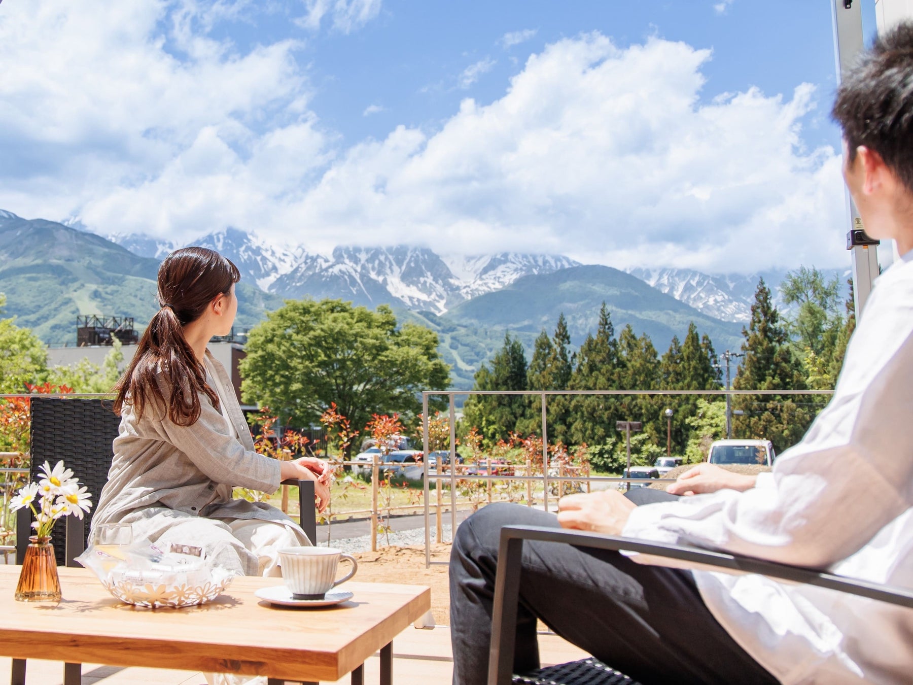 ・白馬三山を一望する「テラス」と「屋上デッキ」