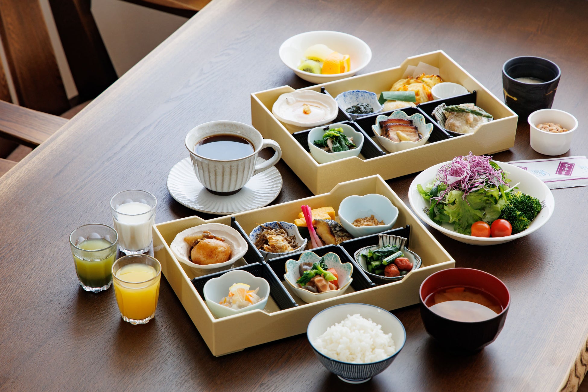 ホテル棟から毎朝手作りの朝食をお部屋にお届けします。地元の素材にこだわった「信州里山ご飯」は、どこかほっとするような優しい味わいでボリューム満点です。