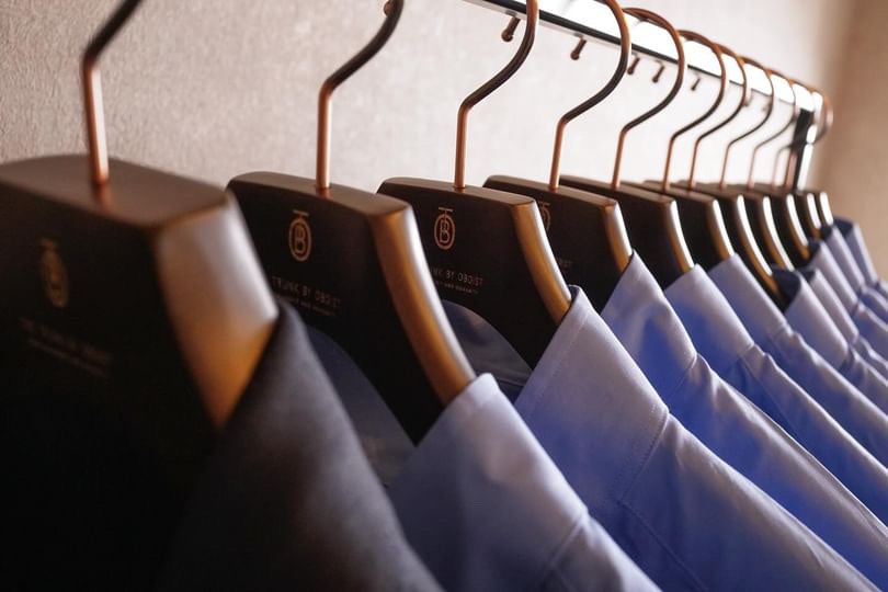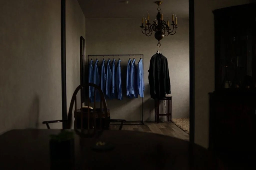 ※写真内のブルーのシャツが時在服飾設計の別注モデルです。
