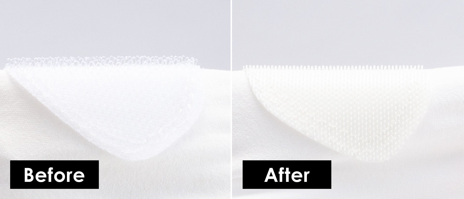 着脱時に面ファスナーが引っ付き虫のように引っかかって、服を傷めてしまう…
