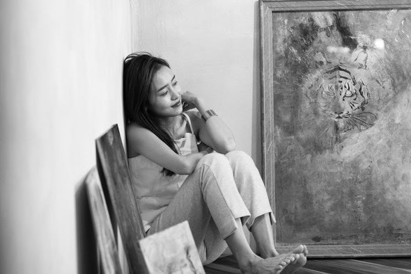 アメリカとイタリアで学生時代を過ごし創作活動を始める、六本木やニューヨークで個展を開催。その後、子育て期間を経て絵画制作を再開する。