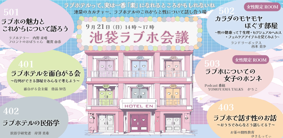 「池袋ラブホ会議」 2025年9月21日(日)開催!!! 池袋のカルチャー、ラブホテルのこれからと性について皆で話し合う場 ~空間デザイナー日神山氏がプロデュース!~