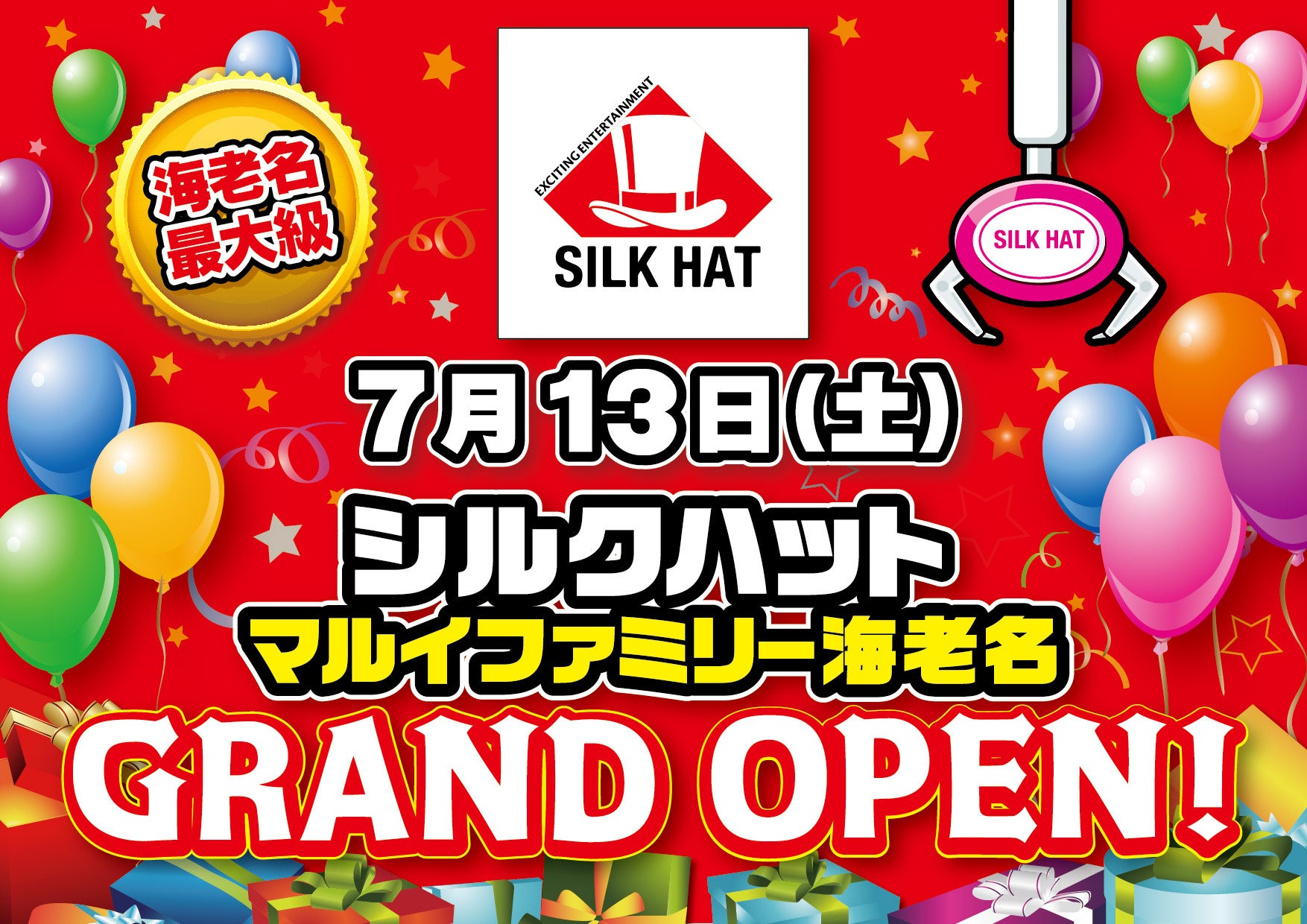 「シルクハット マルイファミリー海老名」7月13日(土)グランドオープン!海老名最大級のクレーンゲームコーナーが登場!