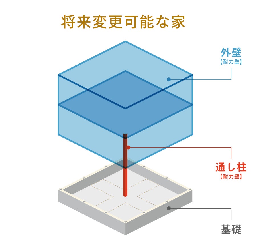 この工法により、家族構成やライフスタイル、ライフステージの変化にあわせて間取りを自由に変更できる柔軟性を持たせることが可能になります。