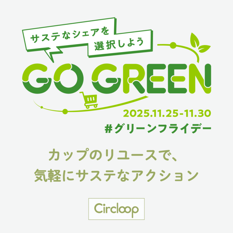 「サステナビリティをあたりまえに」をミッションにリユーザブルカップサービスを展開する株式会社Circloop(本社:東京都港区、代表者:中村 周太)は、欧米を中心に広がるサステナブルな消費を促す「グリーンフライデー」(2025年11月28日)に合わせ、一般社団法人シェアリングエコノミー協会が主導する「GO GREENプロジェクト」に参画することをお知らせいたします。