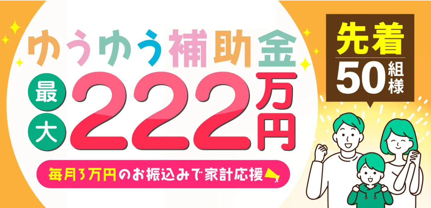 注2)「家計応援!ゆうゆう補助金キャンペーン」」は、悠悠ホーム独自の補助金制度であり、国や地方自治体が行う補助金等とは一切関係ありません。
