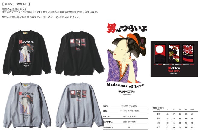尚、「男はつらいよ」50周年においてもサムライコアでは、オフィシャルコラボレーション企画「男はつらいよ サムライコア拝」として、コレクション展開致しました。( https://samurai-core.com/otoko50/ )