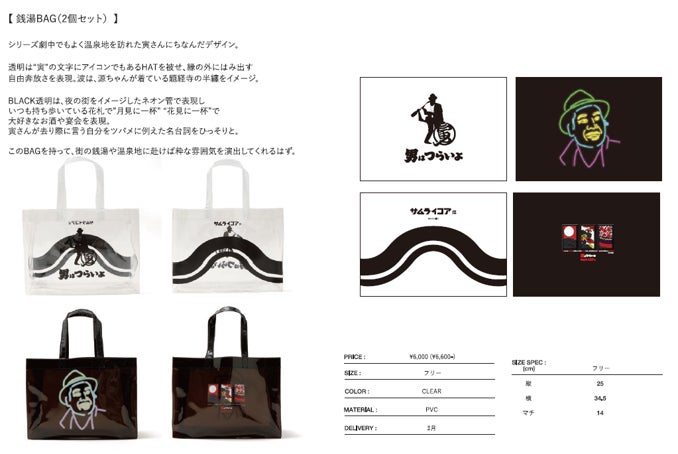 サムライコアでは、この「Go!Go!寅さん」プロジェクトのひとつとして、コラボレーションアイテムのコレクションを発表、オンラインショップでの受注を開始。寅さんサミット2024でのPOP UPなどを経て、今回一般販売の開始となります。