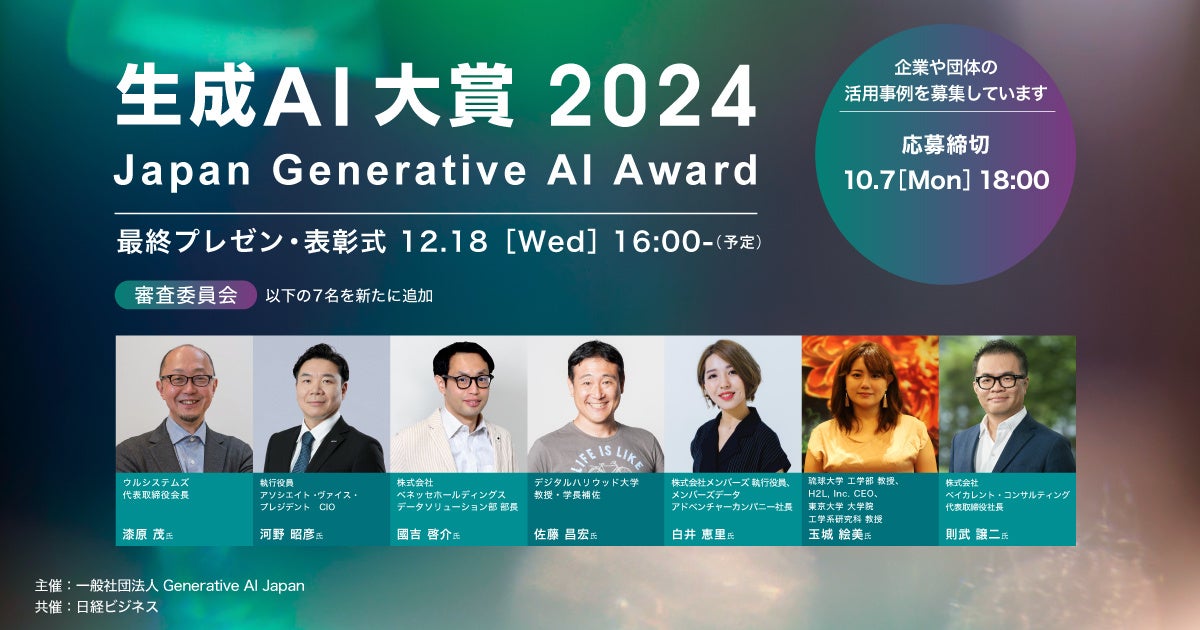 「生成AI大賞2024」 審査委員7名の追加を発表