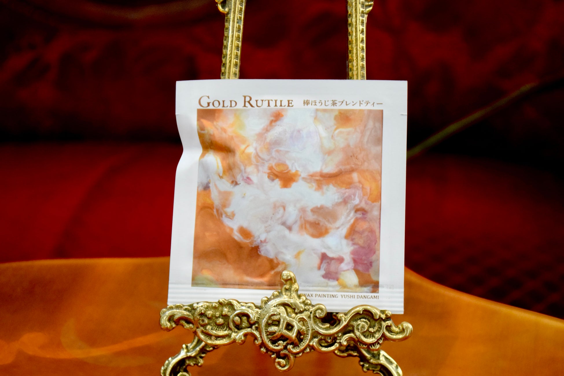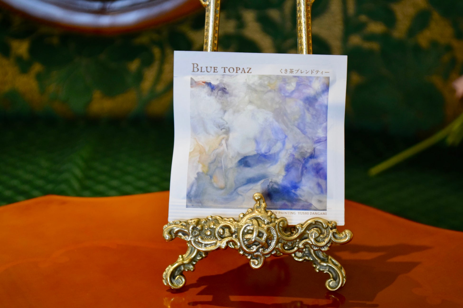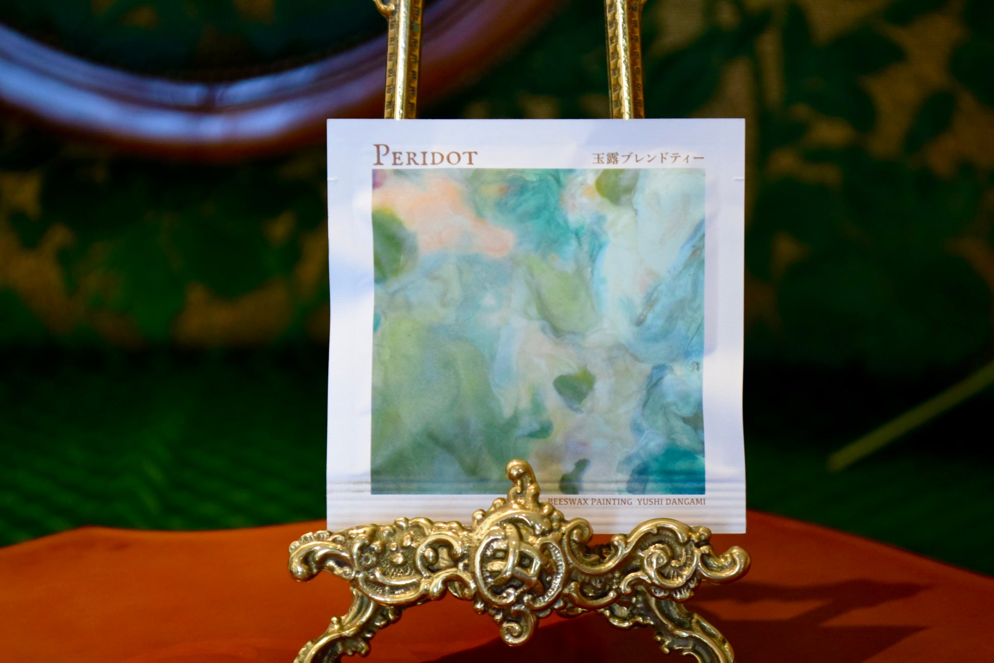 ・パッケージにはお茶をイメージして描かれた「蜜蝋画」をデザイン。現代アーティスト團上 祐志氏の作品。