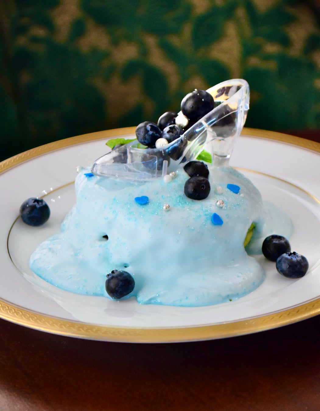 「シンデレラパンケーキ」は、ガラスの靴を差し出すシーンをオマージュ。抹茶チョコミント味。