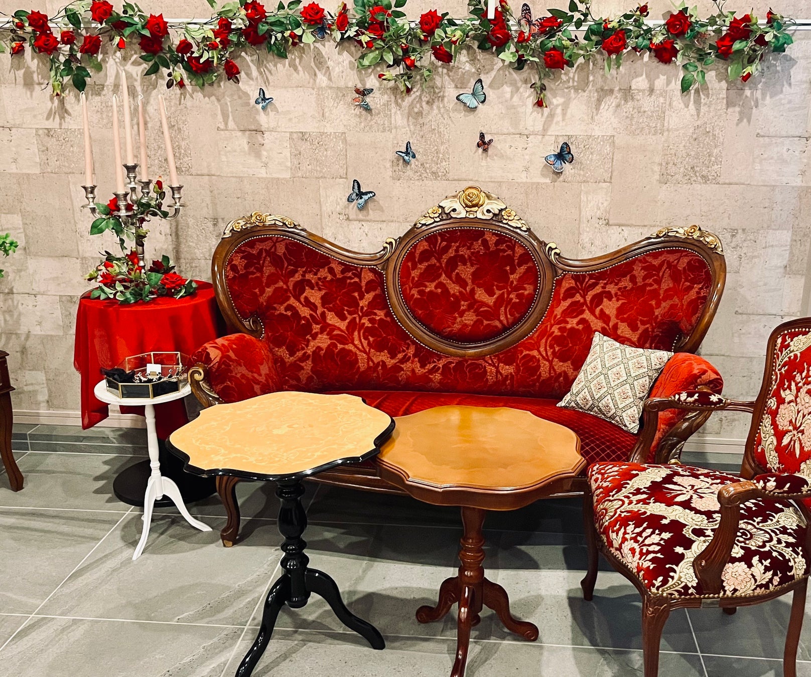 17~19世紀ヨーロッパ風のクラシカルなテイストで、ロココ風アンティーク家具を基調とした空間が女性のお客様にご好評です。
