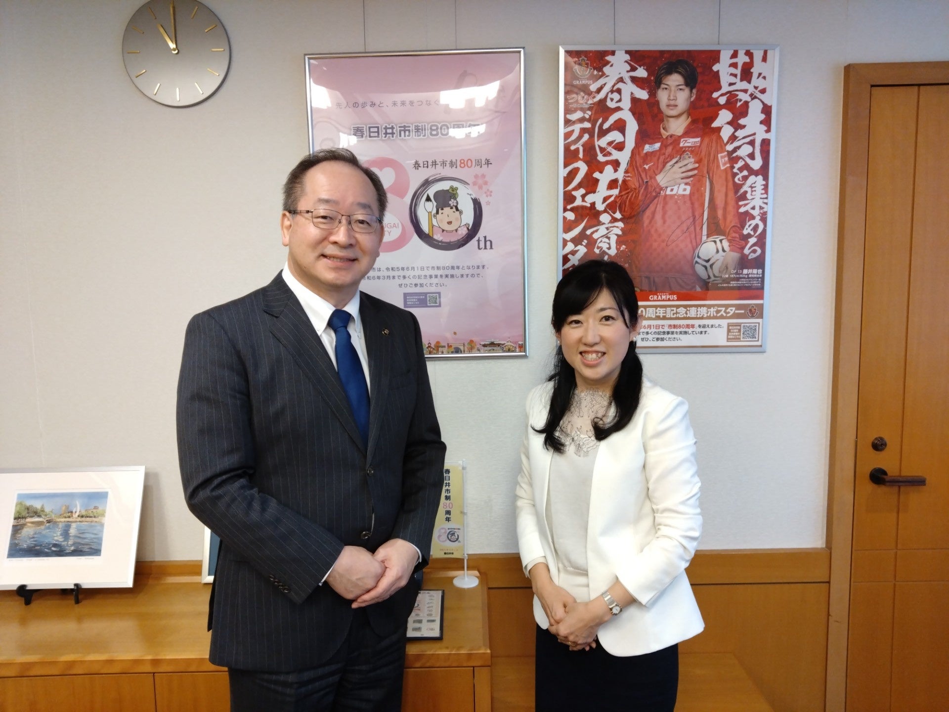 愛知県春日井市長を表敬訪問し、活動を報告させていただく様子は、