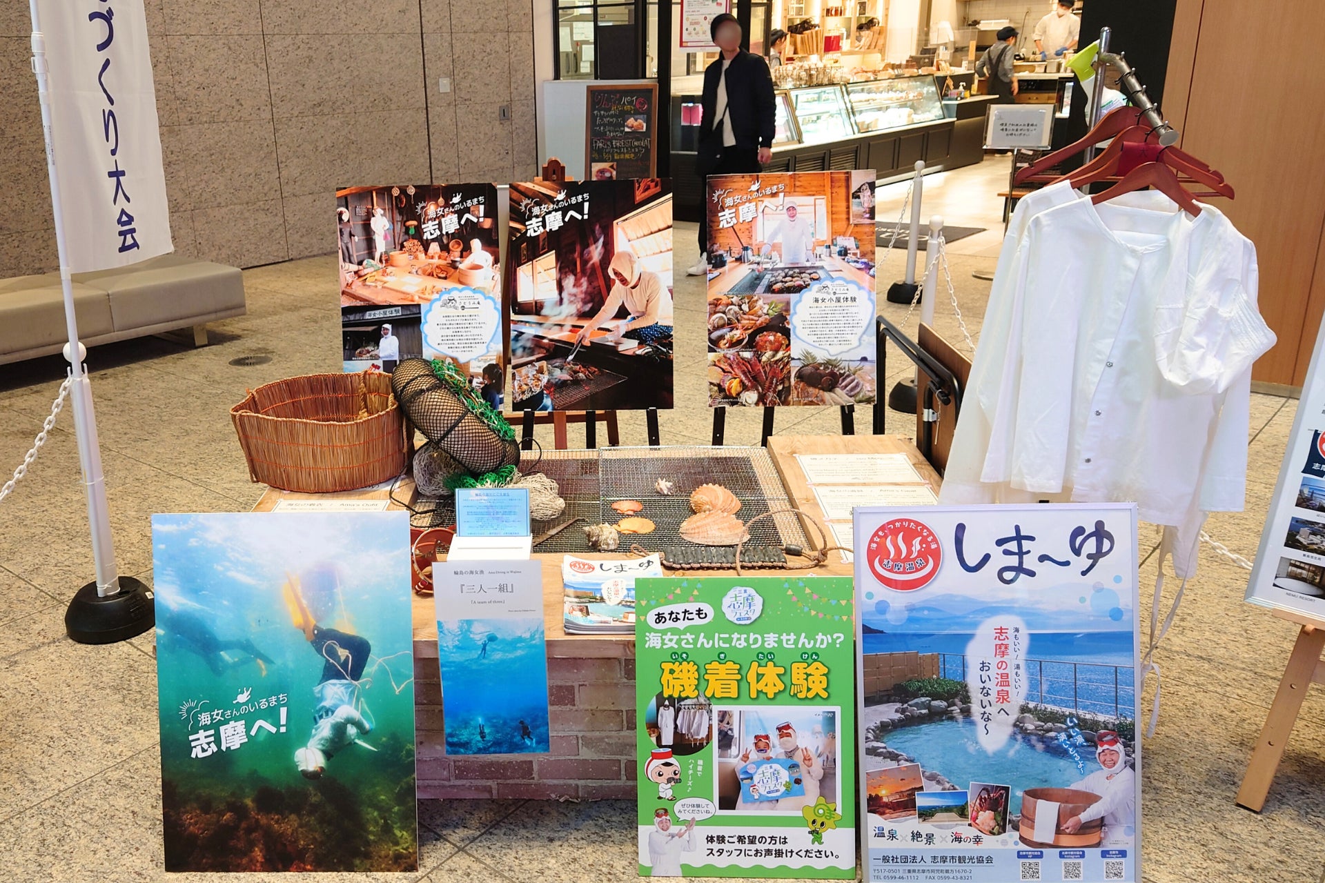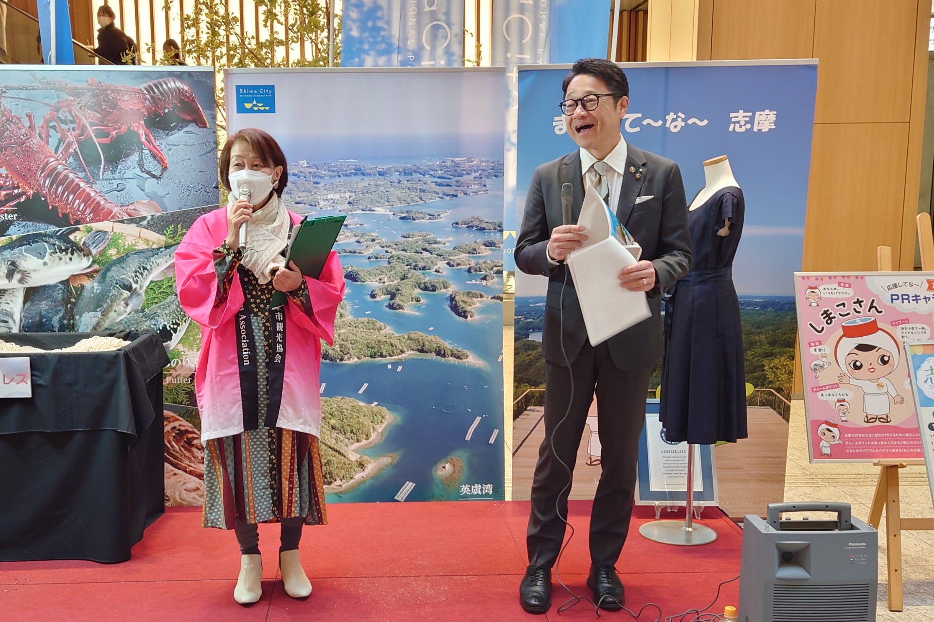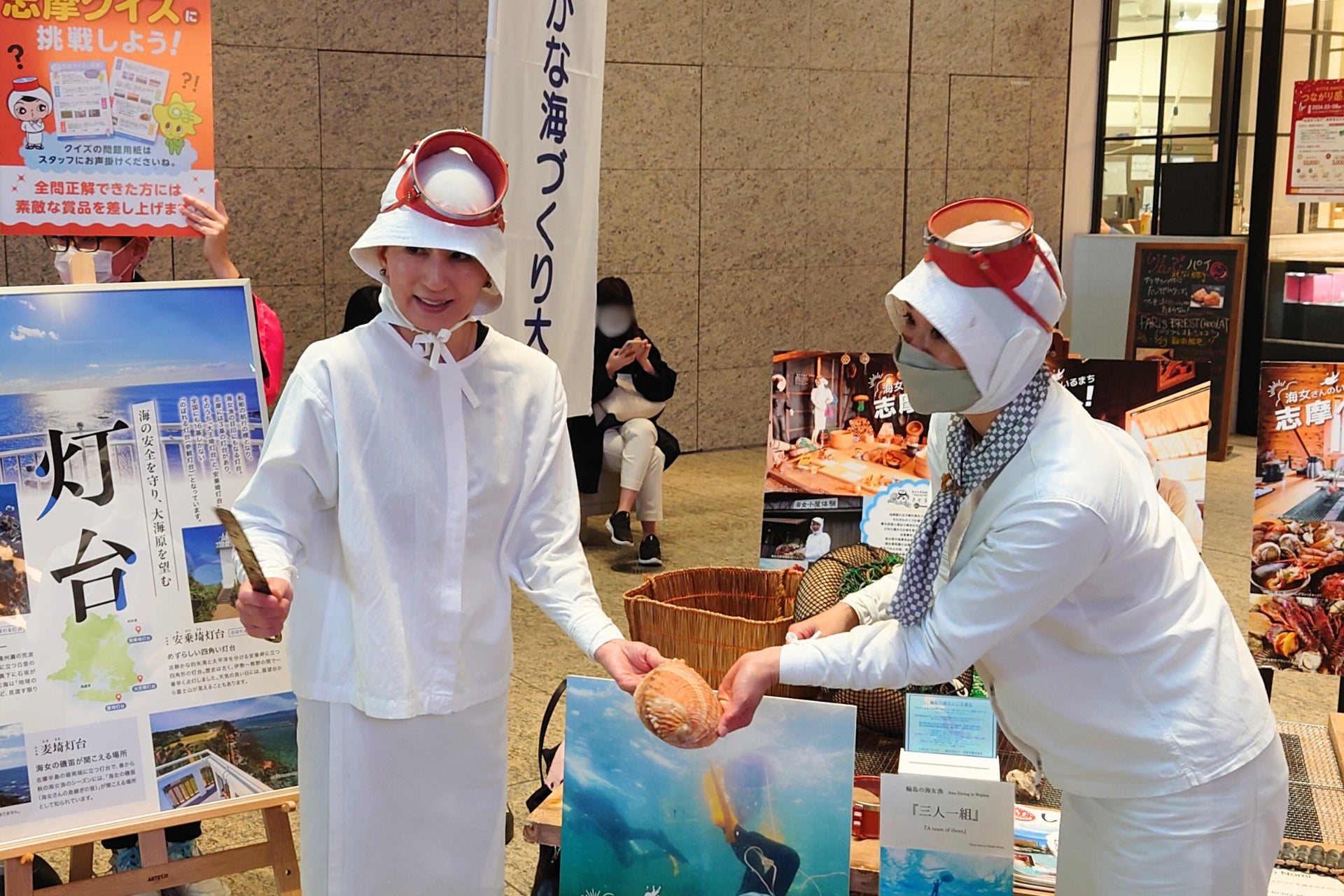 会場では「志摩ブランド」認定商品や三重のお酒販売、本物の海女によるトークショー、志摩市公式キャラクター「しまこさん」のグリーティングなどを実施。志摩市長も駆けつけ、志摩の観光の魅力について語ります。