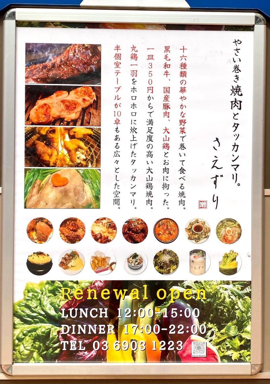 池袋のとり焼肉とタッカンマリ店の「さえずり」が新たにサムギョプサルと黒毛和牛も取り入れて「やさい巻き焼肉とタッカンマリ。さえずり」として 4月19日にリニューアルオープンします。