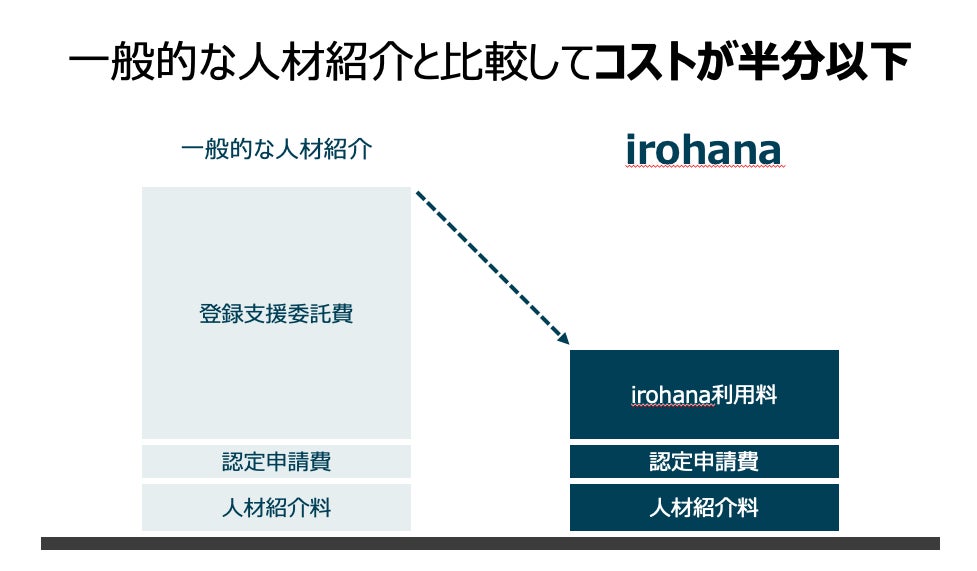 いろはな株式会社(本社:東京都新宿区、代表取締役:澤和 寛昌、以下「いろはな」)は、特定技能外国人材をご紹介するサービス「irohana career」を通じて、企業の人材ニーズに応えられるよう尽力しております。「irohana career」は海外人材だけでなく、国内転職者を含めた幅広い求職者プールから、企業の求める要件に合わせてぴったりな人材をご紹介します。精度の高いマッチングだけでなく、採用後のビザ申請から入社手続きまで、採用にかかる全ての工程を包括的にサポートいたします。企業の採用活動を支援すべく、今後ともサービスの向上に努めてまいります。