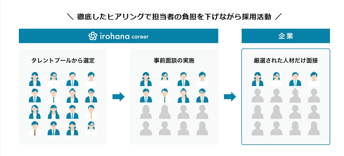 事前にお伺いした採用条件や人物要件に基づき、いろはなが事前面談を行い、候補者から厳選した優秀な人材をご紹介いたします。