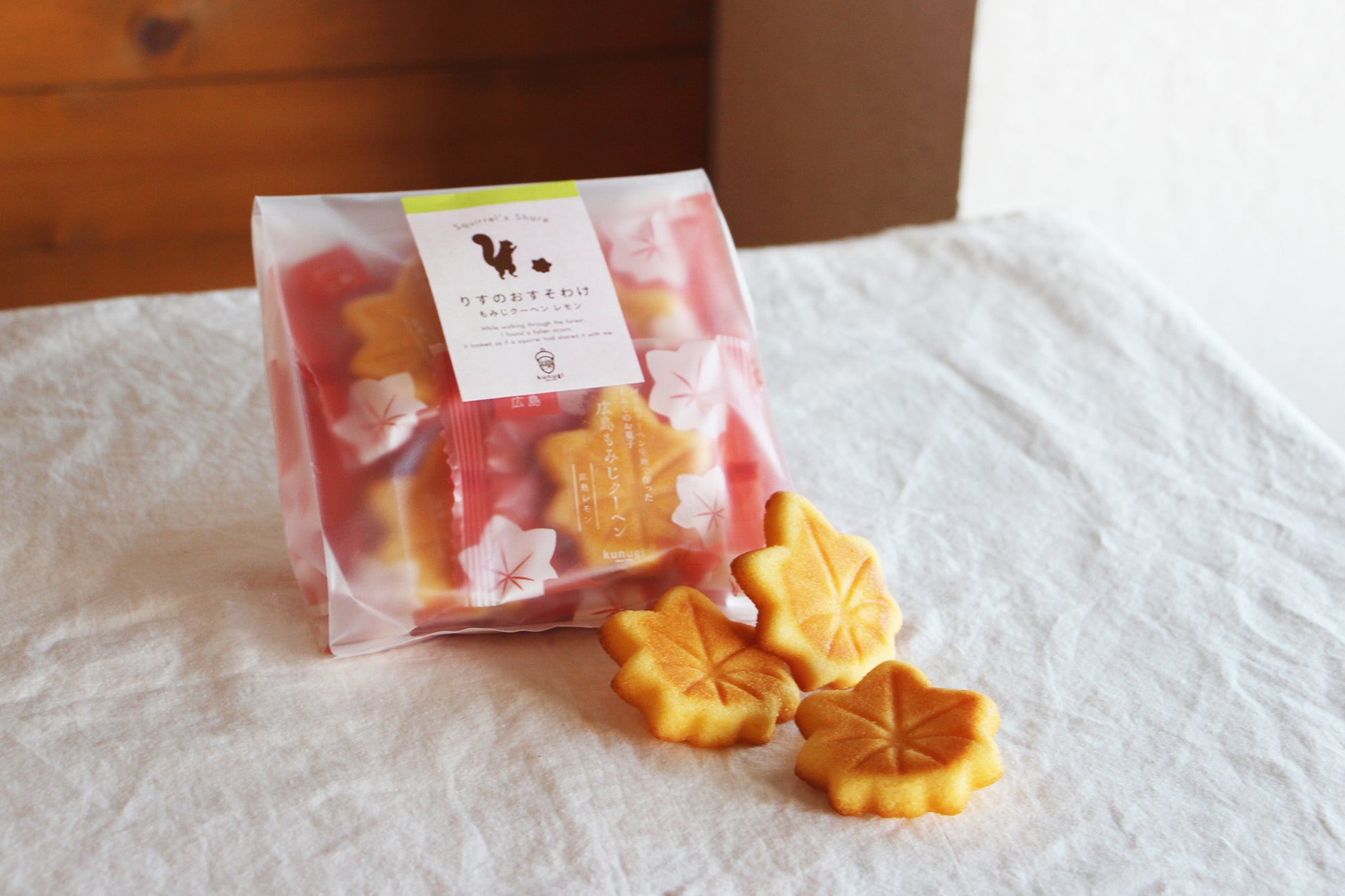 バームクーヘン生地を使ったもみじ型のしっとりとした食感のお菓子。
