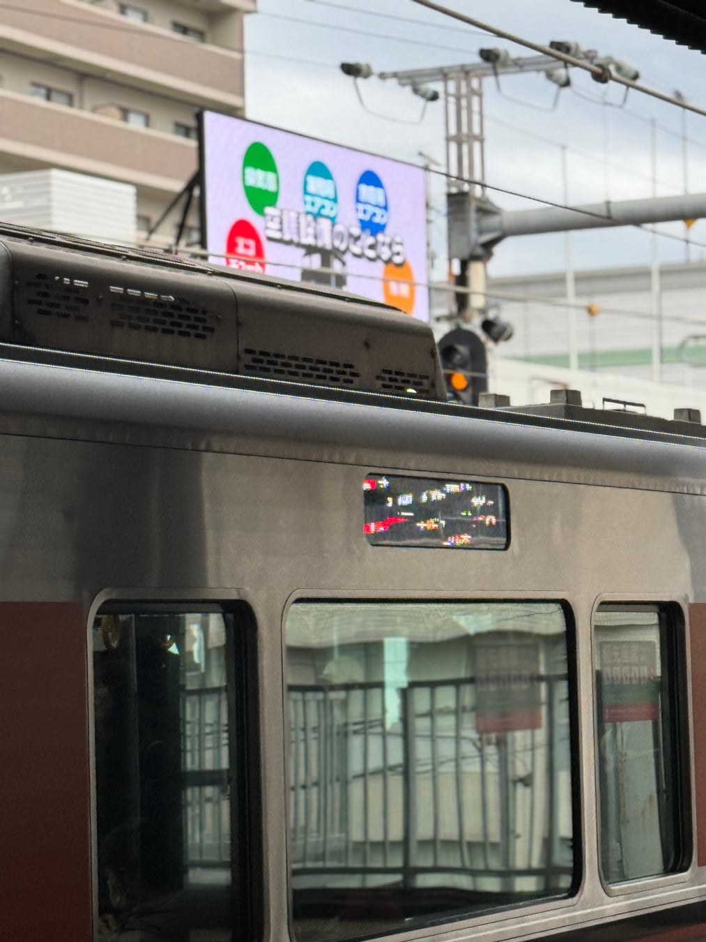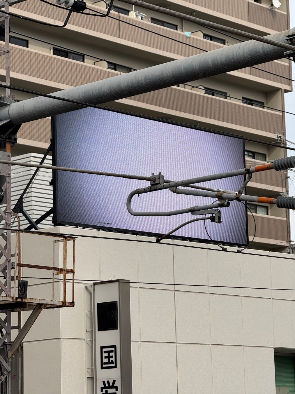 電車発車直後と停車間際に目の前に大型LEDビジョンが目に入ります