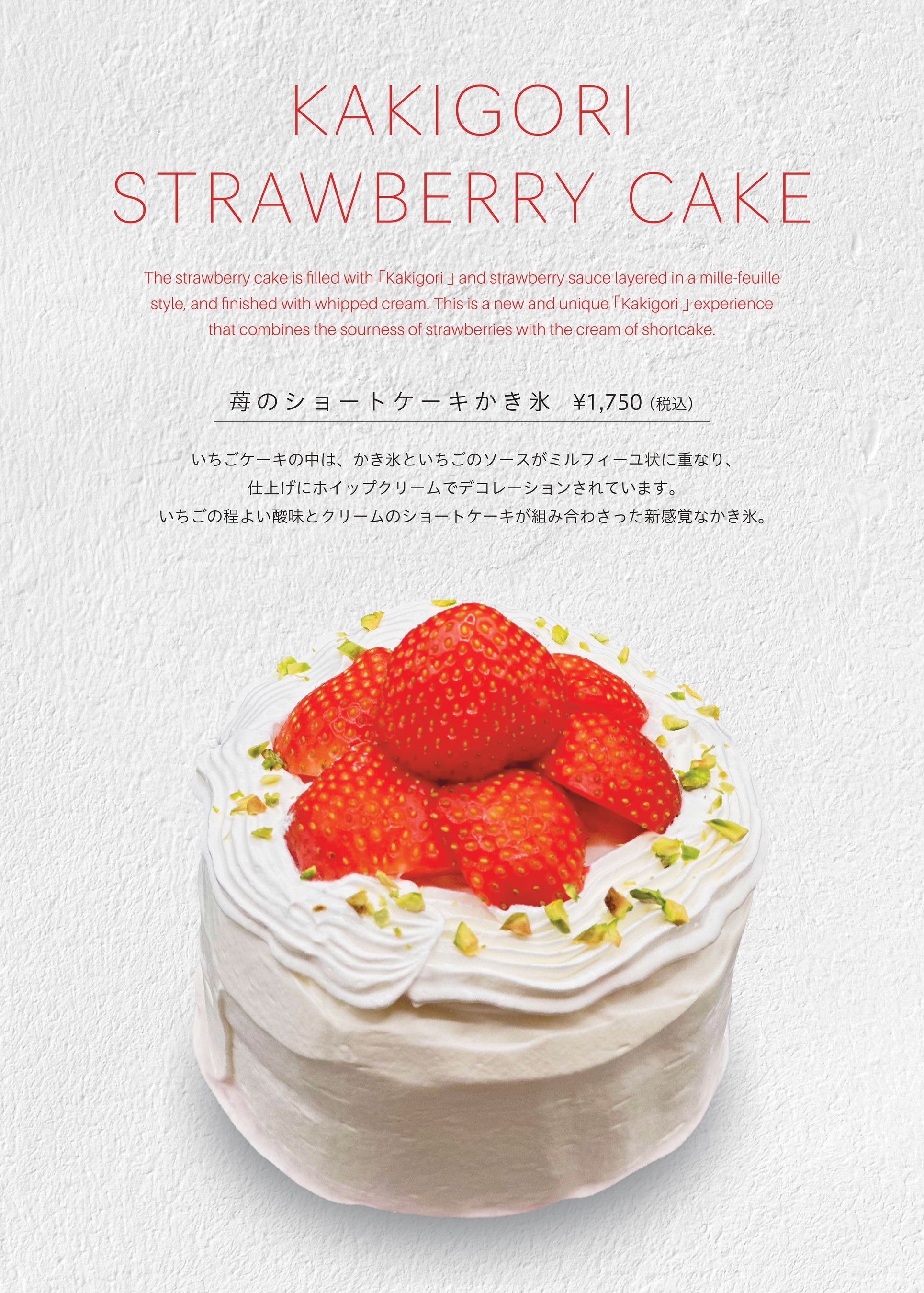 看板メニューとして提供するのは、「イチゴのショートケーキかき氷」です。かき氷とイチゴソースをミルフィーユ状に重ね、真っ白なホイップクリームと、パッと鮮やかなイチゴでデコレーションしてあり、ひんやりした舌触りとシャリシャリとした食感と、イチゴの酸味と甘さが口の中いっぱいに広がり、ミルキーな味わいのクリームが包み込みます。