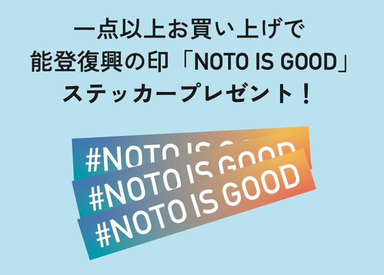 購入特典として、「NOTO IS GOOD」ステッカーをプレゼントいたします。また、売上の一部は能登半島復興のための活動費として活用します。