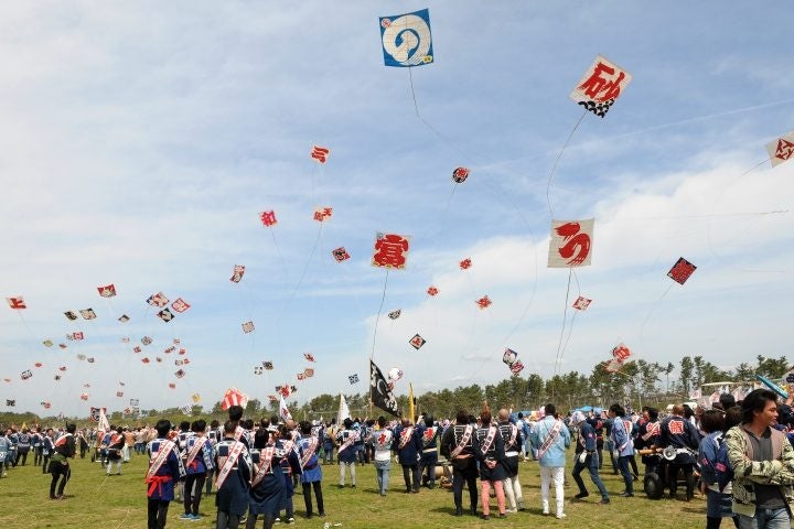 浜松まつりとは、毎年5月に開催される祭りで、その起源は一説によると今から450年ほど前に遡り、当時の浜松を治めていた引馬城主の長男誕生を祝って凧を揚げたことによるとされています。江戸時代に定着し、明治に入りより盛んになり、昭和25年に現在の「浜松まつり」となりました。見どころは、初子の誕生を祝って(※)、各町の大凧に初子の名と家紋を入れた「初凧」を揚げる凧揚げ合戦と、各町自慢の彫刻を施した絢爛豪華な御殿屋台による屋台引き回しです。