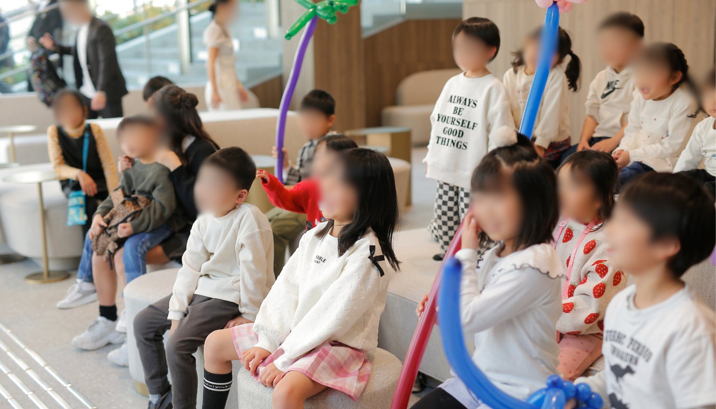 子どもたちはキッズケアスタッフの見守りのもと、ワークショップやプロのバルーンアーティストによるパフォーマンスに目を輝かせ、年齢に応じた遊びや体験を思い思いに楽しんでいました。