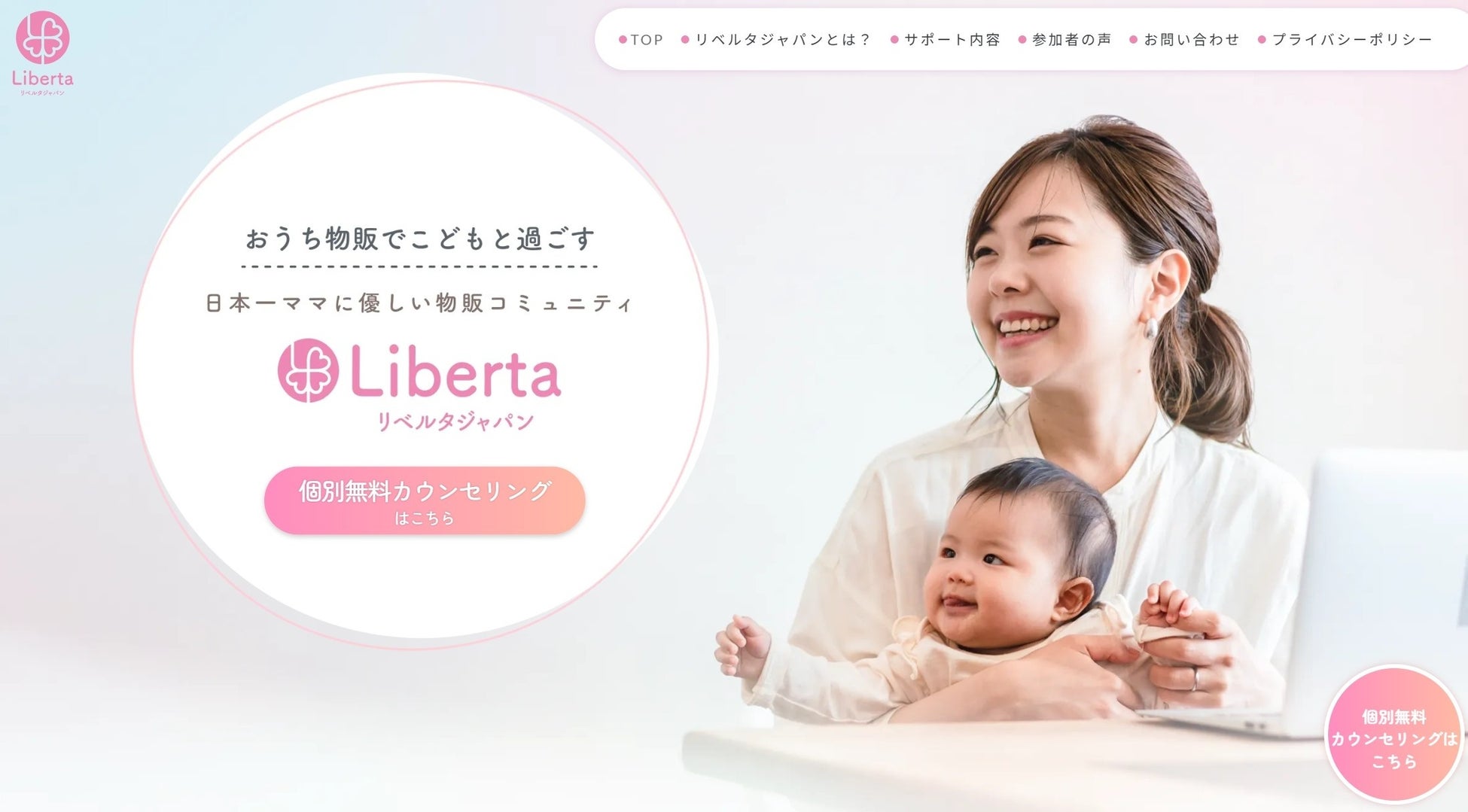 『リベルタジャパン』は、子育て中のママたちが家族との時間を大切にしながら、自立した働き方を実現できるよう支援するオンラインスクールです。
