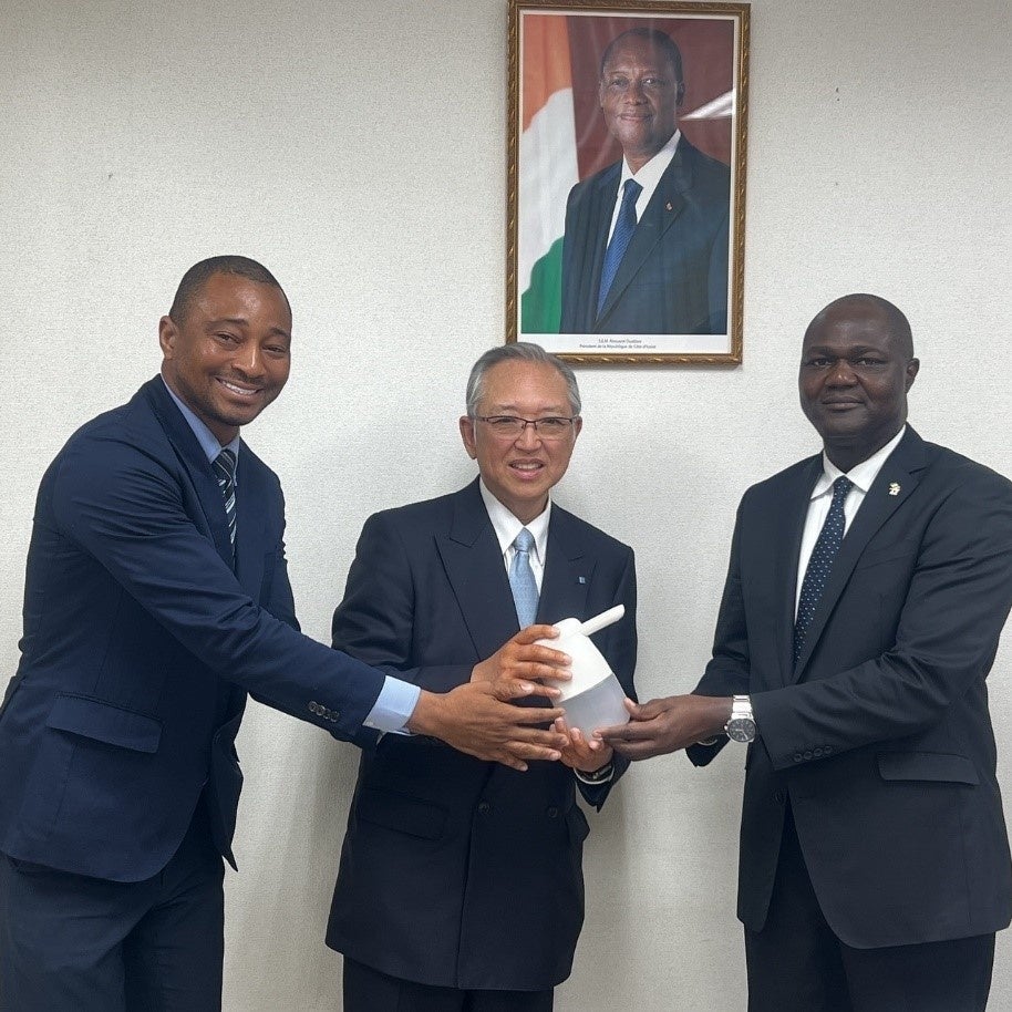 2024年2月2日、当協会へのアルコールディスペンサー「テッテ」贈呈式典が、在日コートジボワール大使館で行われました。