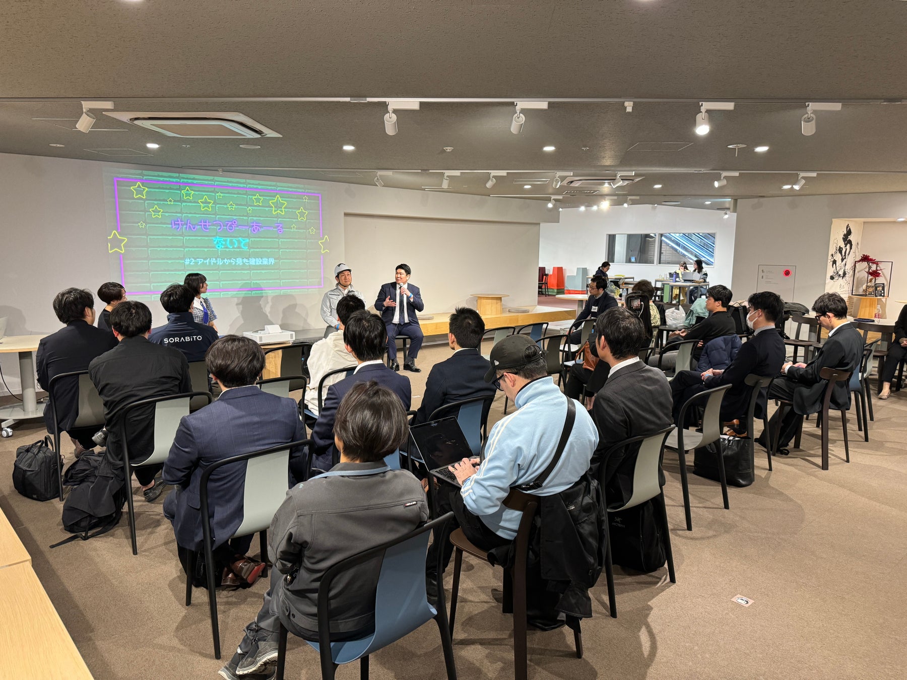 建設および建設が生み出すものに関する「埋もれた魅力の発掘」と「まだ見ぬ魅力の発見」を行うための交流イベント「けんせつぴーあーるないと」の企画・運営を行っています。これまで、「美容師×建設」や「アイドル×建設建設」といったエッジの効いたテーマでイベントを開催してきました。