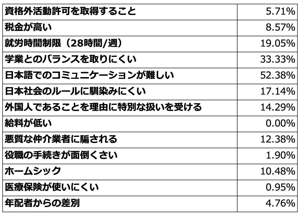 Q.日本でアルバイトをする際に困ること(困ったこと)