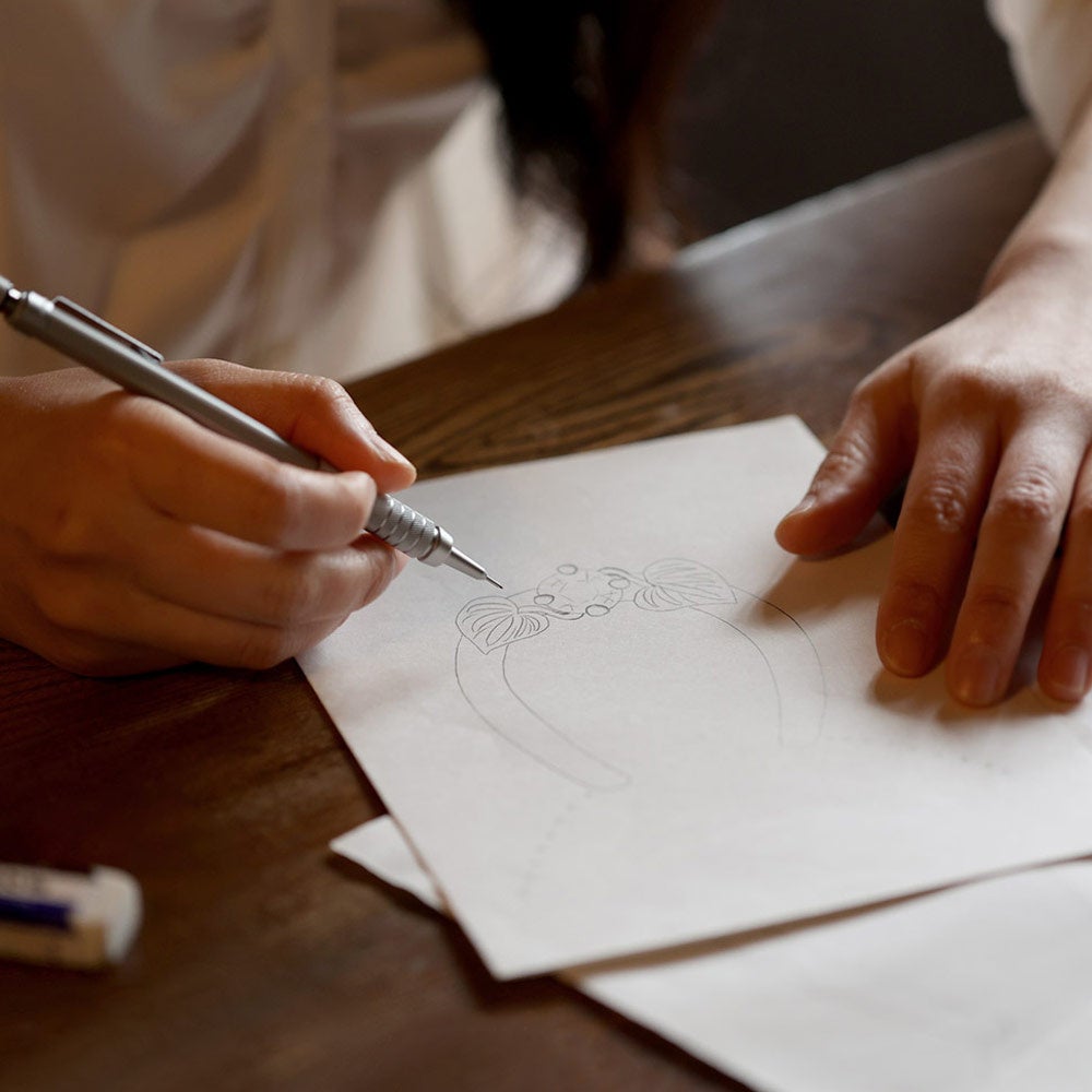 繊細なフタバアオイのモチーフは、宝飾の本場、山梨県甲府のジュエリー職人に